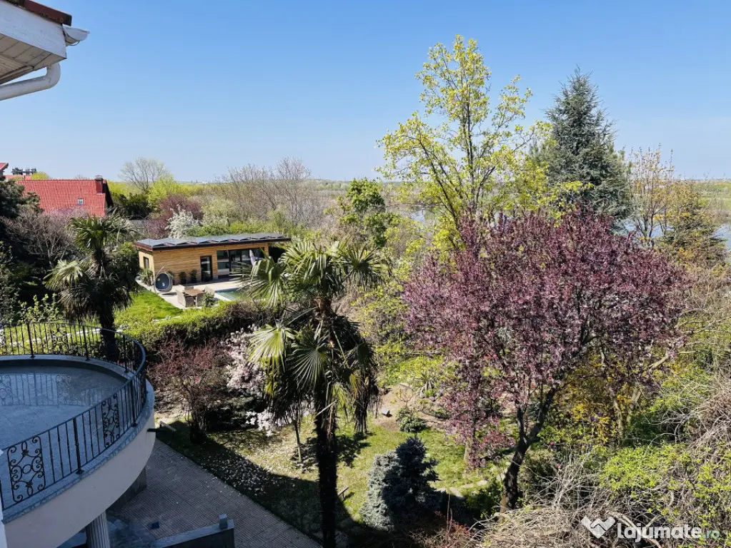 Arhitectura este pusa in valoare de 3 terase cu suprafata totala de 73 mp, orientate catre lac si gradina atent peisagistic amenajata, unde vegetatia matura, foisorul elegant, piscina si jacuzzi definesc un ambient rafinat de resort privat.