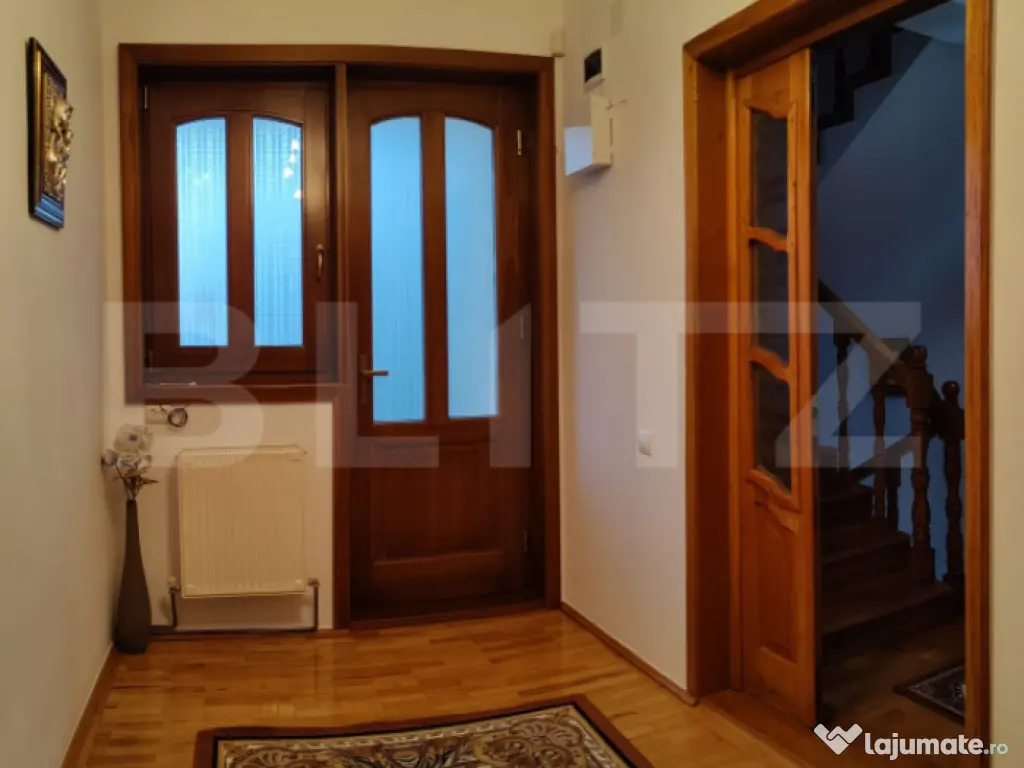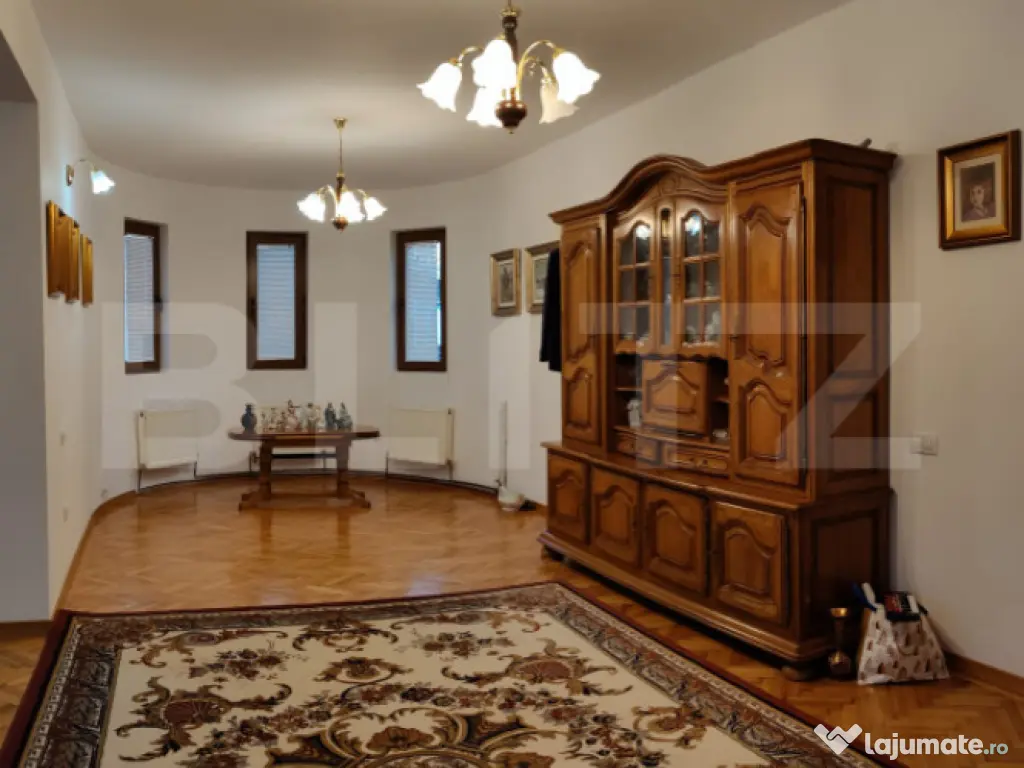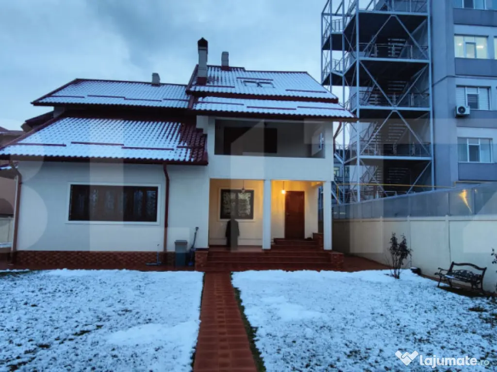 Blitz va propune spre inchiriere o proprietate impunătoare, cu scară interioară și finisaje din lemn masiv, dispusă pe multiple niveluri (subsol, parter, etaj, mansardă), perfectă pentru rezidență premium, birouri sau spații medicale. Cu acces separat în demisol, o compartimentare flexibilă și o curte generoasă, această locație oferă posibilitate de utilizare mixtă (locuință + activitate profesională) în imediata vecinătate spitalului judetean și a policlinicii județene. Această reședință impunătoare, construită pe un teren de ~1.178 mp, cu suprafață utilă de ~470 mp, este dispusă pe subsol, parter, etaj și mansardă, fiecare nivel fiind accesibil și delimitat pentru multiple funcții. Spațiile sunt generoase, bine compartimentate și finisate cu uși masive și pardoseli din lemn masiv, iar scara interioară din lemn robust conferă eleganță și continuitate estetică. Proprietatea oferă intrare separată în demisol, ceea ce o face potrivită pentru activități medicale (clinică privată, centru de recuperare, cabinete specializate) sau alte tipuri de servicii cu trafic controlat, păstrând în același timp funcțiunea de locuință de tip reședință. Configurarea pe niveluri permite organizarea separată a fluxurilor de pacienți/angajați și a zonei rezidențiale, iar existența unui foișor cu cuptor și grătar pe gaz adaugă un spațiu de recepție sau de relaxare în aer liber, valoros și pentru mediul medical sau corporate. Dotările, finisajele, accesul facil și poziționarea centrală fac din această proprietate nu doar o locuință de prestigiu, ci și un asset investițional atractiv pentru operatori de servicii medicale, clinici sau birouri corporative. ???? Programează o vizionare și descoperă potențialul acestei proprietăți rare – un asset perfect atât pentru locuit, cât și pentru investiții în servicii medicale sau corporate! Cod ofertă / ID BLITZ: P163719 Id intern: P163719 Număr niveluri imobil: 2 Număr Băi: 2 Nr. locuri parcare: 3 Curent Apă Canalizare Gaz Sistem irigaţie Climă