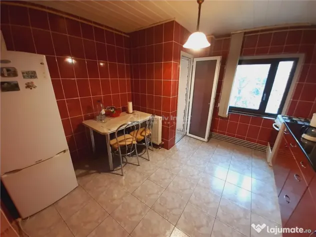 - Apartamentul se afla la etajul 3 al unui imobil cu regim de inaltime P 4 etaje; - ACOPERIS REFACUT, FARA PROBLEME, confort 1, decomandat, compus din;- 3 camere, (1 sufragerie spatioasa si 2 dormitoare generoase), 1 bucatarie mare, complet mobilata si utilata, cu acces la 1 balcon inchis cu termopan; 2 bai - ambele cu geam de aerisire (cea mare avand si cada) si 1 hol spatios, totul la o suprafata totala de cca. 89 mp;