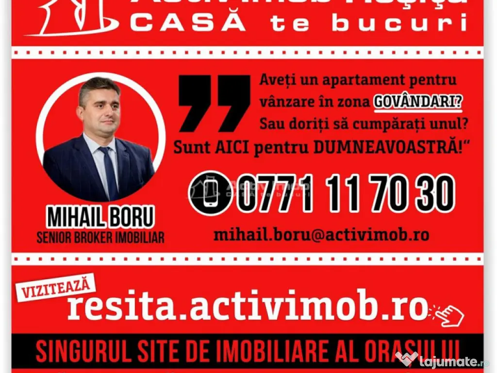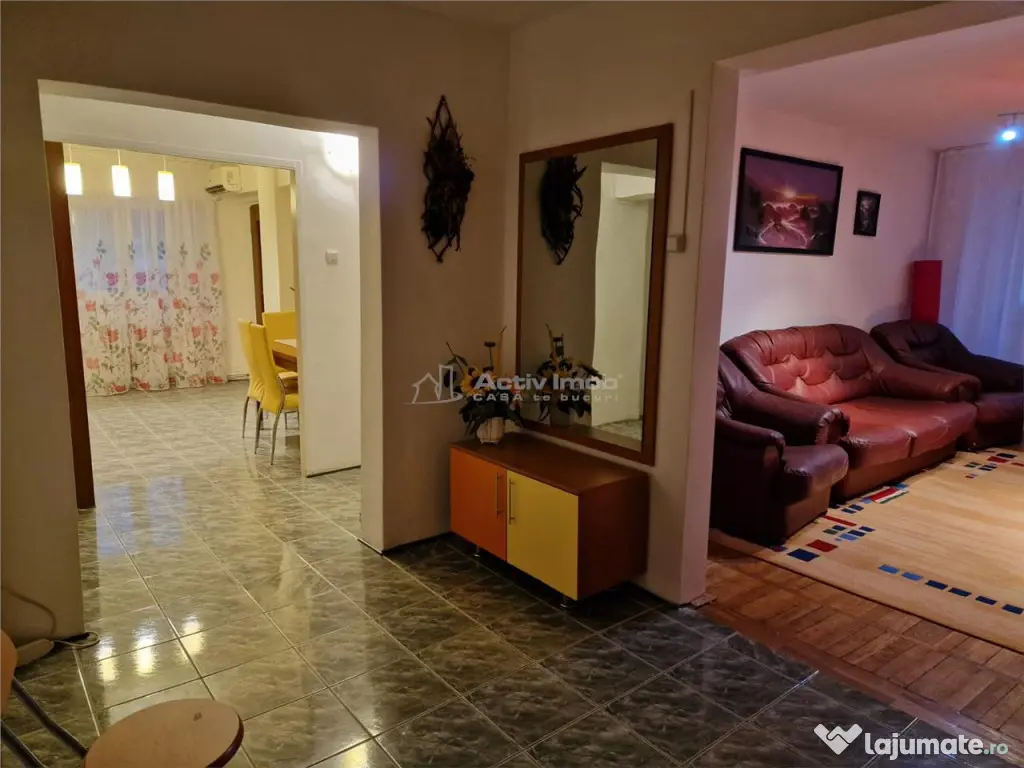 BENEFICII PENTRU CLIENTII ACESTEI OFERTE: 1. Apartamentul se afla la etajul 7 al unui bloc de 10 etaje, izolat pe exterior, este confort 1 decomandat, are 3 camere (o sufragerie spatioasa si 2 dormitoare), o bucatarie mare tip open space, mobilata si utilata, 2 bai, 2 balcoane (unul transormat intr-o mini-bucatarie, cu acces din bucatarie si dintr-un dormitor), 2 holuri incapatoare, spatiu tip dressing, totul avand o suprafata de cca 105 Mp. Detine aparat de aer conditionat, centrala termica, geamuri termopan, usi interioare schimbate si usa metalica la intrare; Are aplicat parchet, gresie si faianta iar baia principala este prevazuta cu geam; Apartamentul este compartimentat intr-un stil modern, intr-un confort sporit, iar blocul din care face apartamentul este amplasat intr-o zona centrala dar linistita; Este curat, ingrijit, aerisit si nu prezinta urme de infiltratii sau miros neplacut, iar scara este curata, administrata corespunzator. Se inchiriaza mobilat (ca in poze) si utilat (aragaz, frigider, masina de spalat, TV). Daca si dumneavoastra aveti o proprietate in Resita sau in Judetul Caras-Severin si doriti sa o vindeti sau sa o inchiriati, va rugam sa sunati la numerele de telefon 0771 117 030 - Mihail Boru sau 0784 726 875 - Petre Culcea si vom crea un profil personalizat pentru vanzarea sau inchirierea acesteia, vizibil pe site-ul de imobiliare al orasului: resita.activimob.ro 2. Beneficii oferite de zona: - la 2-3 min. de Complexul Comercial HEHN unde se gasesc sedii de banci, farmacii etc. - la 2-3 min. de Facultatea Eftimie Murgu, scoala, gradinita si cresa; - la 3-4 min de Policlinica SMF si Corpul Administrativ Taxe si impozite al Primariei Resita. 3. Situatia juridica: Aceasta proprietate detine informatii reale, fiind verificata si evaluata in prealabil de Compartimentul Suport Back-Office. 4. Unde se poate petrece timpul liber: - se afla in imediata apropiere a mai multor baruri si restaurante, precum si a unor farmacii si supermarketuri (Kaufland, Lidl); - la 3-4 min de Centrul comercial Nera unde se gasesc restaurante, pizzerii, cafenele, terase, pub-uri, fast-food si diferite magazine; -la 1-2 min. de parc; -la 3-5 minute de sali de fitness si sala sporturilor. RECOMANDARE: PENTRU A VIZUALIZA TOATE OFERTELE SI A PRIMI NOTIFICARI CU NOILE OFERTE, VA RUGAM SA SOLICITATI CERERE DE PRIETENIE PE FACEBOOK, Petre Culcea ActivImob Resita SAU ACCESATI SITE-UL DE IMOBILIARE AL ORASULUI: resita.activimob.ro Compania ACTIV IMOB ROMANIA este singura care detine dreptul de mediatizare a acestei proprietati, astfel intermedierea pentru inciriere se va realiza doar prin si cu sprijinul acesteia, chiriasul avand garantia ca tranzactia se va finaliza in siguranta si legal. ID ACTIV IMOB: 215187 CASA te bucuri!!! Confort: 1 sporit Tip imobil: Bloc de apartamente Număr Băi: 2