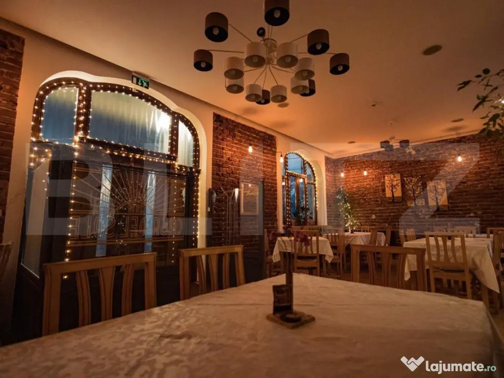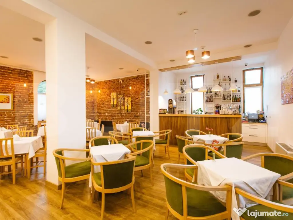 Blitz vă oferă spre inchiriere un Restaurant, complet mobilat și utilat, situat în Alba Iulia. NU SE VINDE IMOBILUL, afacerea este amplasată la doar 600 m de Poarta a III-a a Cetății Alba Carolina, oferind acces rapid la principalele obiective turistice ale orașului. Dispune de restaurant, bar, terasă și parcare privată gratuită, fiind pregătită pentru preluare și continuarea activității fără investiții suplimentare. Printre facilitățile ce le oferă se numără: -Grădină amenajată, -Lounge comun, -Terasă pentru servirea mesei, -Parcare privată gratuită pentru oaspeți. Afacerea reprezintă o oportunitate excelentă pentru antreprenori care doresc să preia o unitate de alimentație deja consacrată, într-o zonă cu trafic turistic ridicat. Cod ofertă / ID BLITZ: P167954 Id intern: P167954 Stadiu construcţie: Finalizat Număr încăperi: 6