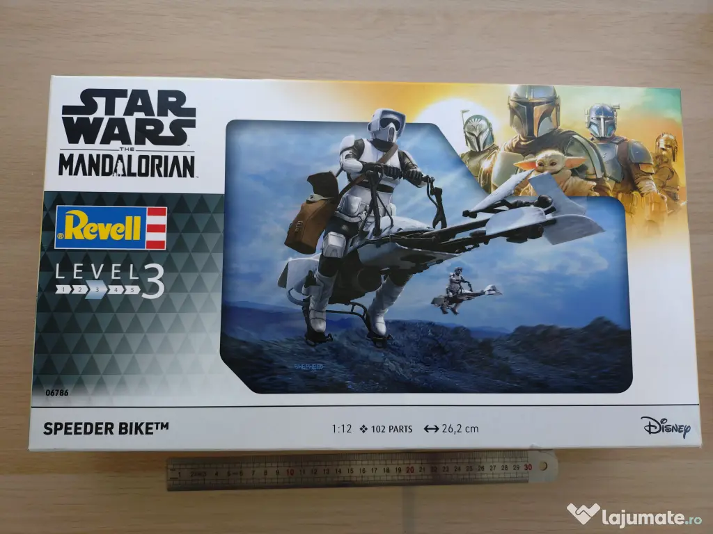Machetă Revell 06786 Star Wars Speeder Bike, 1:12. Trebuie montată și vopsită. Scara 1:12, 102 piese, lungime - 26,2 cm. Este versiunea care a apărut în serialul Mandalorian (nu cea din filmele originale). Predare personală doar în București (sector 2, 3, 4). Nu trimit în țară. Macheta este în cutia originală, nemontată și nedeteriorată. Accept orice verificare, dacă doriți și alte fotografii puteți să îmi spuneți. Prețul nu este negociabil. Se poate plăti cash sau prin revolut la livrare. Am marcat produsul nou deoarece nu a fost folosit (sau montat). Produsul a fost cumpărat cu ceva timp în urmă. Puteți verifica și celelalte anunțuri ale mele.