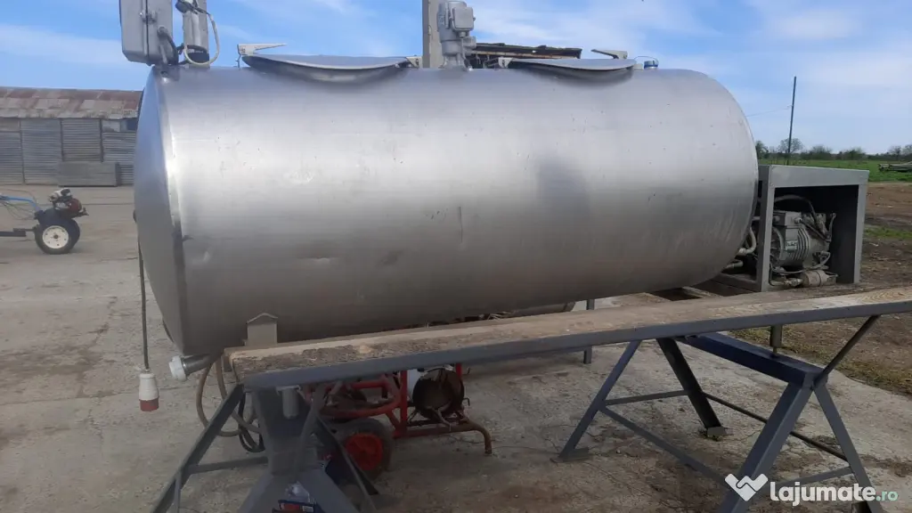Vând rezervor de răcire lapte din inox alimentar, capacitate 900 litri, ideal pentru fermă, centru colectare lapte sau procesare produse lactate.
