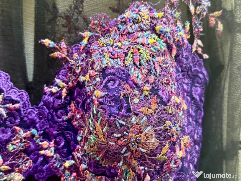 Rochie mov de ocazie, unicat, perfectă pentru nunta, botez, petreceri.