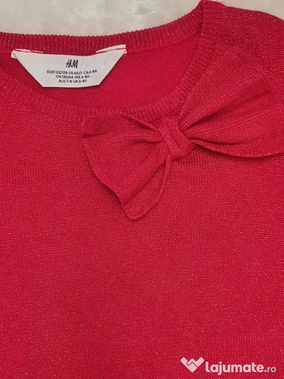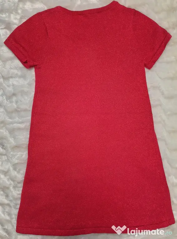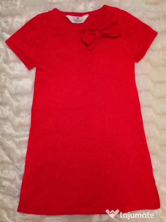 Vând rochiță superbă pentru fetițe, marca H&M, ideală pentru serbări, petreceri sau perioada sărbătorilor. Rochia este nouă, cu etichetă, într-o nuanță elegantă de roșu închis, îmbogățită cu un sclipici fin care îi oferă un aspect prețios.