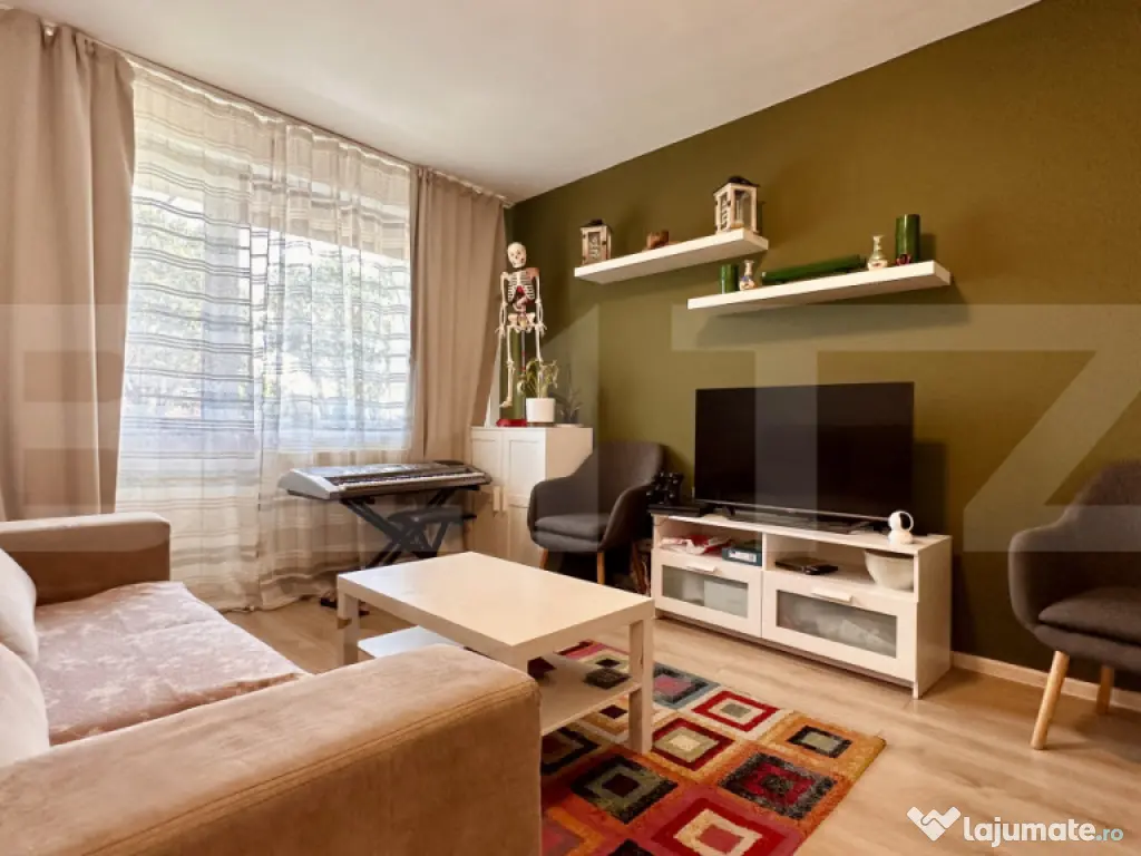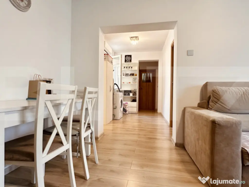 Se vinde semi-mobilat, cu bucătărie complet utilată și mobilată, cu excepția frigiderului.