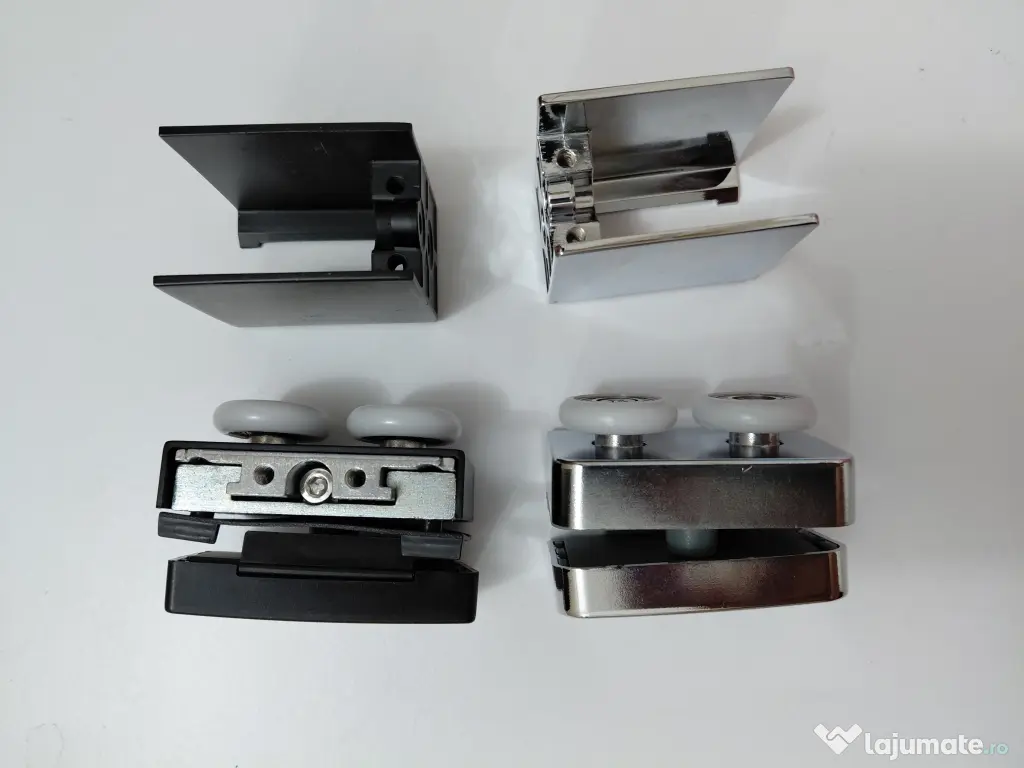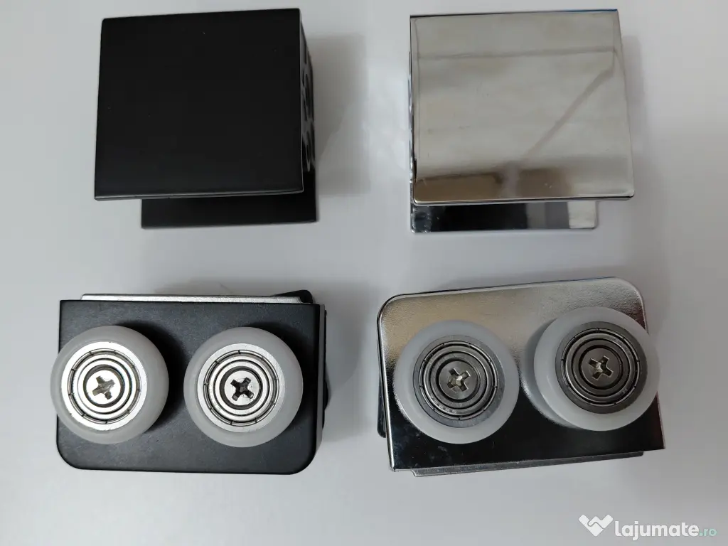 Role mari duble, negre sau cromate (preferentiale) pentru cabina dus/panouri de stica de 1 cm - 10 lei/buc, sau set de 4 role la pret de 40 lei continand si suport protectie/prindere (foto). Produsele sunt noi.