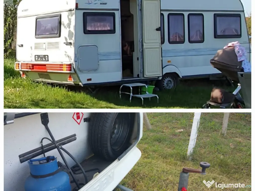 Vând Rulotă Hobby Clasic 520, are 2 spații de dormit pentru 4 persoane, bucătărie utilata, baie utilata, sistem de manevrare cu telecomanda,cort. Este perfecta. Am folosit-o de cateva ori ca spațiu de dormit pe perioada construcției casei.