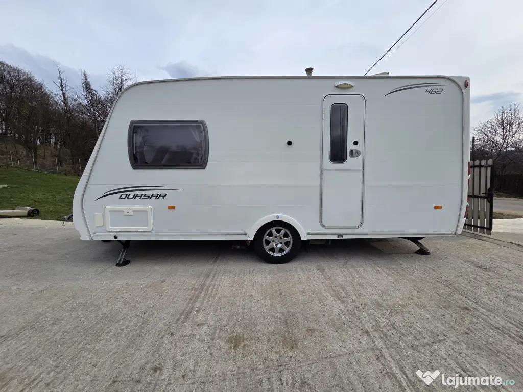 Vând rulotă Lunar Quasar 462, foarte bine întreținută, ideală pentru vacanțe în familie sau escapade în natură. Totul este funcțional 100%, curată, fără infiltrații și pregătită pentru utilizare imediată.