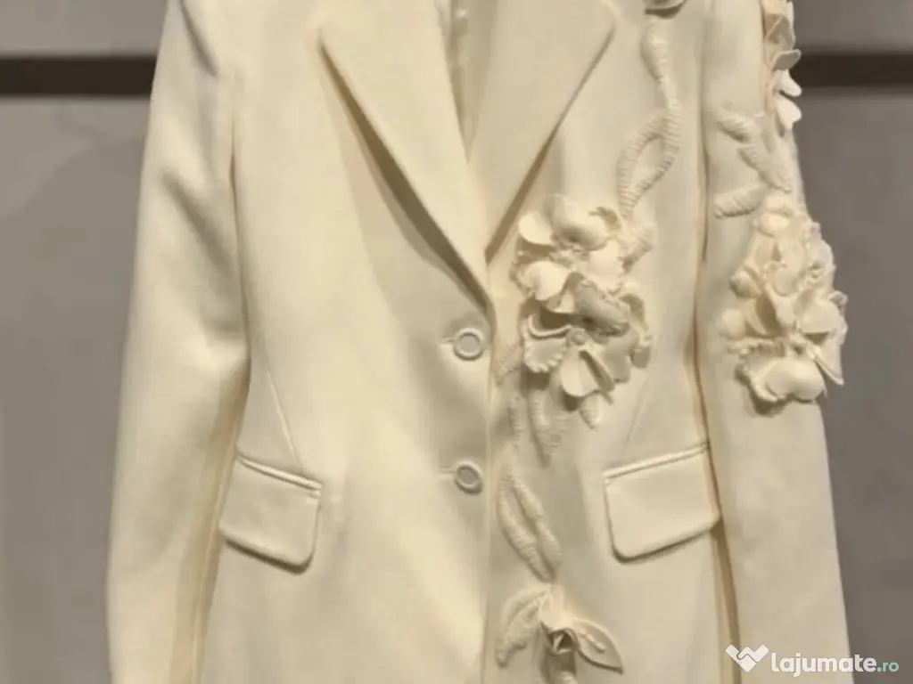 Sacou model unic oversize cu flori și detalii,de culoare bej