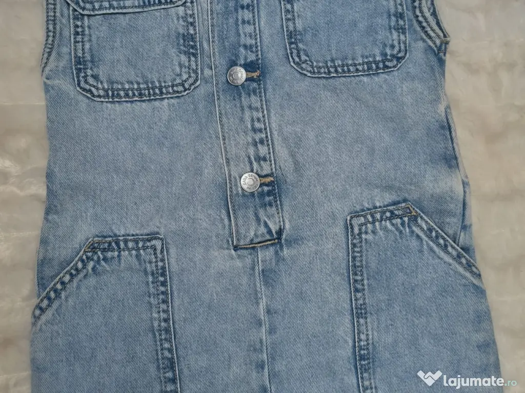 Vând salopetă din denim pentru fete, brand Zara, absolut nouă (cu etichetă), dintr-un material de calitate superioară (100% bumbac). Este o piesă versatilă, modernă și foarte confortabilă, ideală pentru orice sezon.