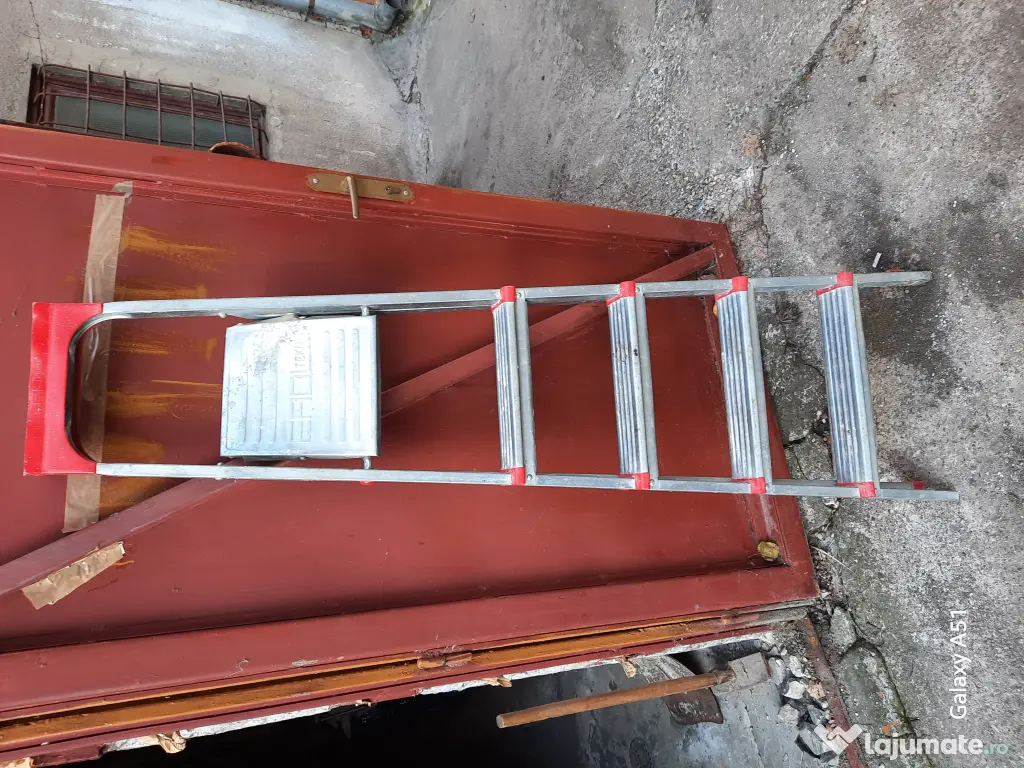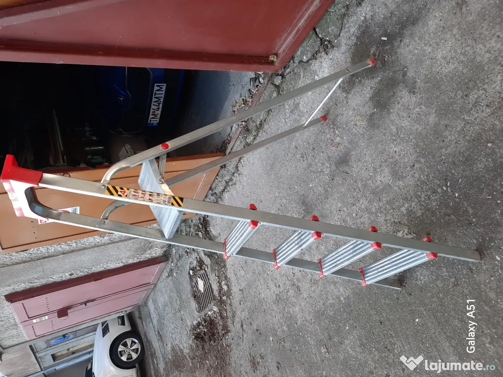 Vand scara din aluminiu pliabila, foarte usoara cu 5 trepte, foarte putin folosita, in perfecta stare, suporta 150 kg. pret 150 lei negociabil.