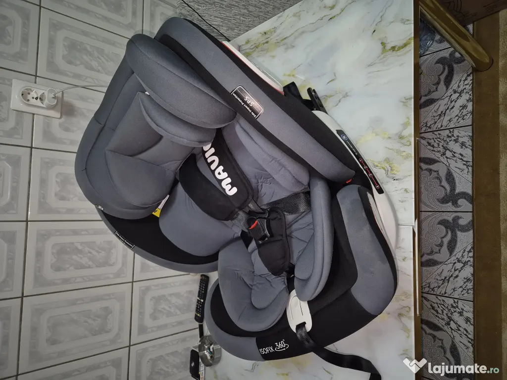Vând scaun auto Mavio cu sistem ISOFIX și rotație 360°, ideal pentru părinți care vor siguranță maximă și confort pentru copil 👶🚗
