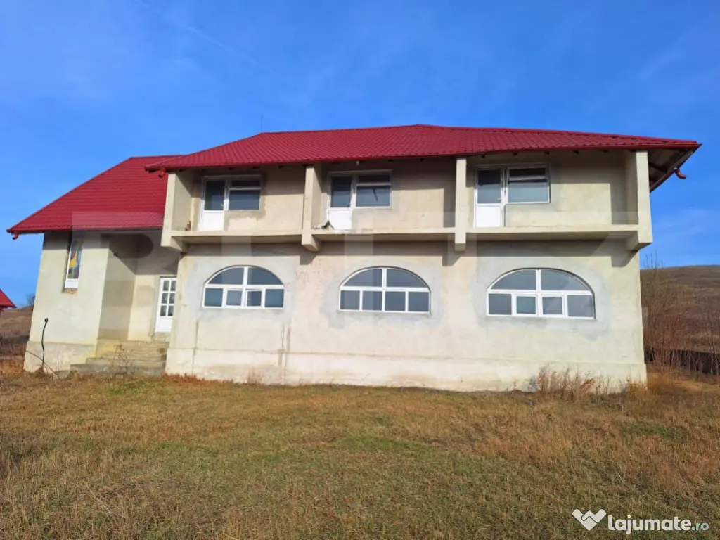 Schimb sau Vanzare!! Blitz va ofera spre vanzare o pensiune modernă, situată pe drumul european E85, la doar 6 km de Hanul Ancuței și 3 km de viitoarea autostradă A8 (Iași – Tg. Mureș). Imobilul este edificat pe un teren generos de 1.645 mp, cu o deschidere de 47,8 ml, având o suprafață utilă totală de 752,87 mp distribuită pe demisol, parter și etaj. Compartimentare: -Demisol: adăpost A.C. (22,27 mp), grup sanitar (5,5 mp) – total 27,77 mp -Parter: holuri acces, grupuri sanitare, sală restaurant (150 mp), bucătării complet echipate, depozite, vestiar – total 345 mp -Etaj: 6 camere cu baie proprie, balcoane, holuri, spații de depozitare – total 380,1 mp Dotări: -Construcție BCA, acoperiș Lindab, tâmplărie termopan -Fosa septică proprie, instalații electrice și sanitare Utilități la limita proprietății: gaz, apă, curent Sistem de paratrăsnet Avantaje: -Poziționare excelentă, vizibilitate la E85 -Funcțională imediat ca pensiune/restaurant -Posibilitate schimbare destinație: azil de bătrâni, grădiniță, after school etc. Eligibilă pentru fonduri europene (maxim 200.000 € finanțare nerambursabilă/proiect) ???? Variantă tehnică (pentru proiecte europene) Imobil: spațiu comercial – pensiune și restaurant Suprafață teren: 1.645 mp Deschidere: 47,80 ml Suprafață utilă totală: 752,87 mp (demisol + parter + etaj) Regim de înălțime: D+P+E Compartimentare: -Demisol (27,77 mp): adăpost A.C., grup sanitar -Parter (345 mp): holuri acces, grupuri sanitare clienți/personal, sală restaurant (150 mp), oficiu, bucătării caldă/rece, spălător, depozite, vestiare -Etaj (380,10 mp): holuri, 6 camere cu băi proprii și balcoane, depozit, debarale, grupuri sanitare Infrastructură și dotări: Construcție BCA, acoperiș Lindab Tâmplărie PVC cu geam termopan Sistem paratrăsnet, instalații sanitare și electrice complete Fosa septică proprie Toate utilitățile la limita proprietății (gaz, apă, electricitate) Locație: -Acces direct la drumul european E85 -6 km de Hanul Ancuței -5 km de nodul viitoarei autostrăzi A8 (Iași – Tg. Mureș) Destinație și oportunități: -Funcțiune actuală: pensiune și restaurant (intabulată, înscrisă la primărie) -Posibil schimbare destinație: azil de bătrâni, grădiniță, after school, spații comerciale etc. Eligibilă pentru finanțări nerambursabile – fonduri europene (max. 200.000 € / proiect) Cod ofertă / ID BLITZ: P153487 Id intern: P153487 Stadiu construcţie: Finalizat Număr încăperi: 6