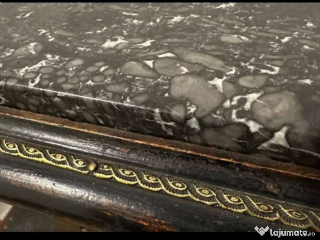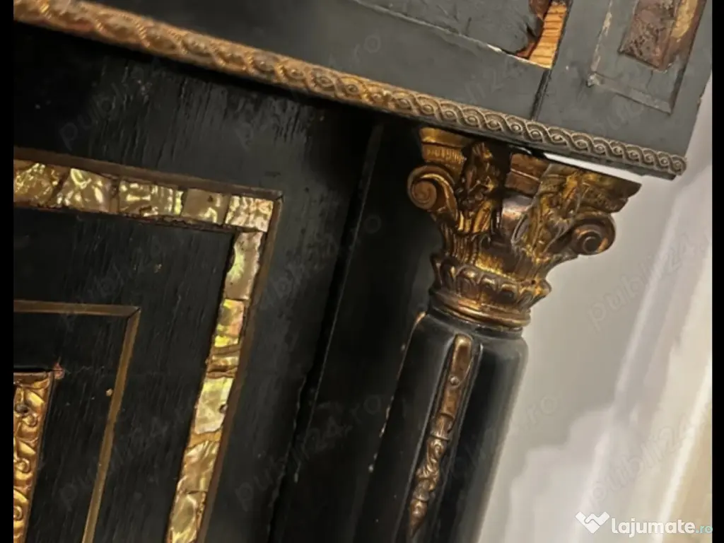 Scrin Bahut Napoleon III din lemn cu inserții și aplicații de sidef și bronz dore, cu blat de marmură neagră