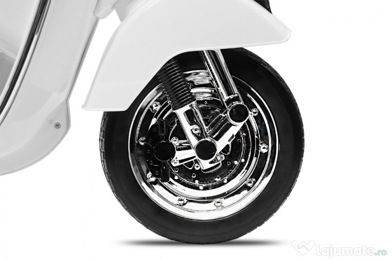 Scuter electric pentru copii Piaggio Vespa Roller 70W 12V PREMIUM Scaun tapitat cu piele ecologica, confortabil pentru copil Sistem de pornire soft CVT (pornire lină) Anvelope moi din cauciuc EVA, silentioase si rezistente Pornire cu cheie Schimbator de directie ( foward- neutral- reverse) Ghidon multifuncțional (muzică, corn) Faruri LED + lumină spate LED + faruri auxiliare LED Music player cu port USB, slot CARD, port AUX si afisat nivel bateri Compartiment de depozitare Suspensie roată spate 2 motoare electrice de putere 35W fiecare la tensiune 12V 2 Niveluri de viteză (lent / rapid) Baterie 12V / 7 AH Acid plumb tip baterie 6FM7 Muzică de divertisment cu efecte sonore Greutate produs 12,5 kg Suporta o greutate de pana la 35 Kg Produs recomandat pentru 3-9 Ani Dimensiuni produs LxWxH 1070 * 510 * 820 mm Dimensiuni cutie 950 * 350 * 350 mm Garantie 1AN, TRANSPORT GRATUIT , LIVRARE RAPID PRODUS NOU Pret: 180 Euro Telefon: O729.189.471