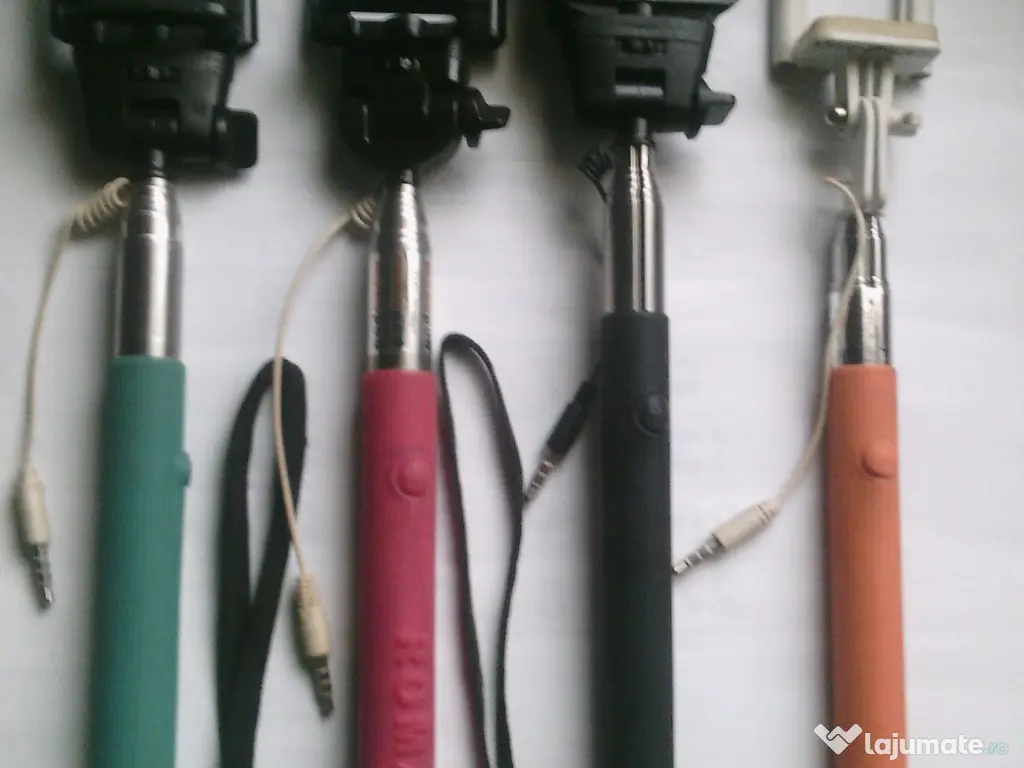 Selfie stick cu sisteme de montura profesionale, prevazute cu cleme pentru fixare rapida, suport rotativ 360 grade si diverse reglaje. Jack de 3.5 mm, cablul incorporat 4 bucati