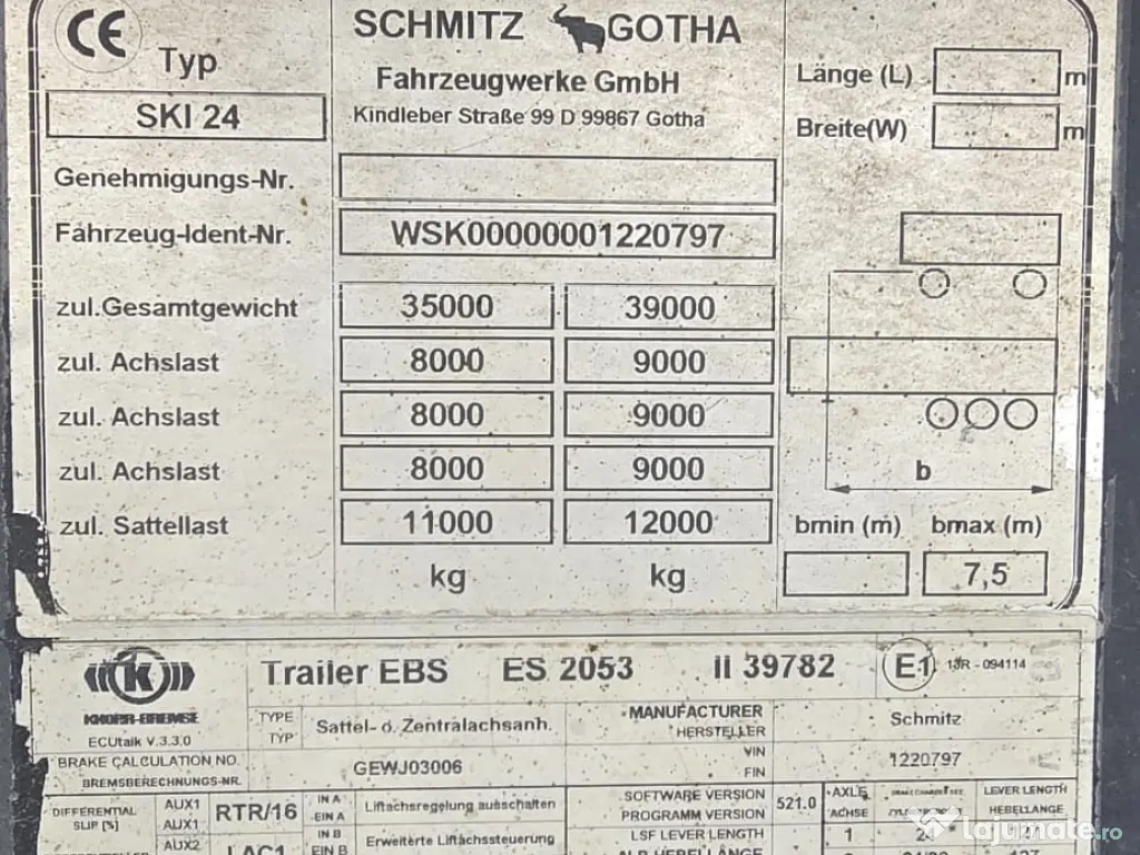 Semiremroca basculabila Schmitz an fabricatie 2007, bena din Hardox (foarte rezistenta), rulata foarte putin (maxim 120.000 km), frane noi, bucsi noi, stare de functionare foarte buna.