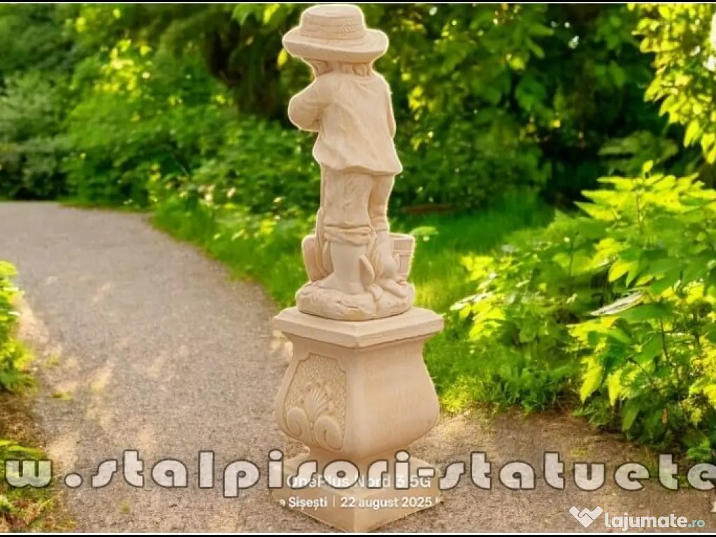 – DETALii TEHNiCE Și iNFORMATiVE PRODUS: – Preț: 800 lei set (1 băiețel+1 stativ.) Detalii Tehnice: Înălțime: 112 cm. Diametru bază sativ: 28x25 cm. Diametru bază copil: 28×34 cm. Greutate: 104 kg. (1 copil+1 stativ.) Material: Beton aditivat, ciment 52,5 R, agregate concasate.