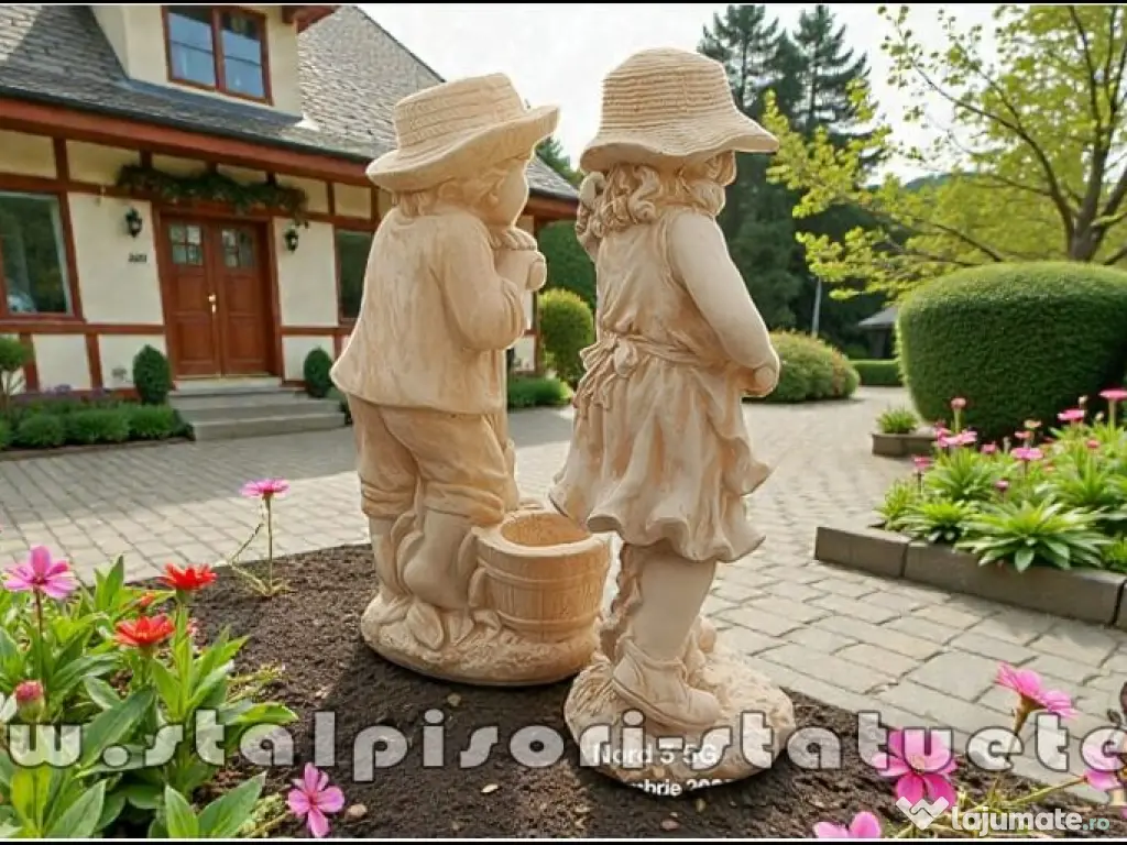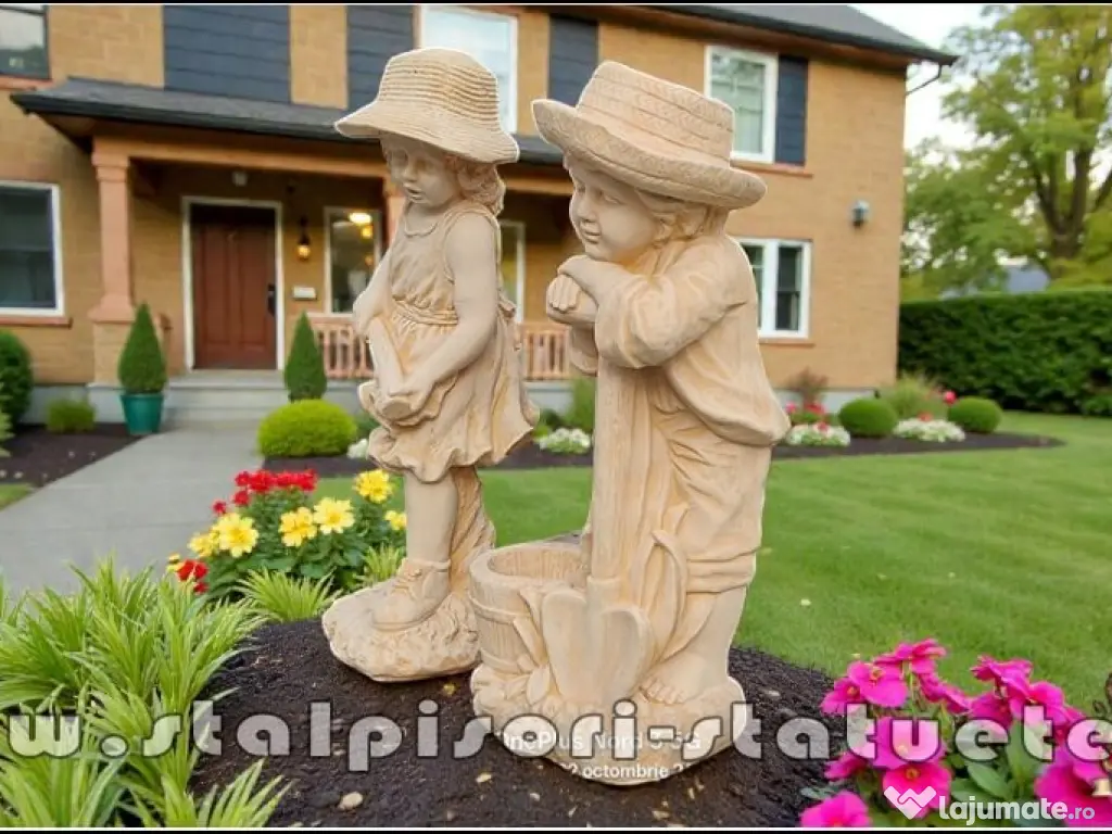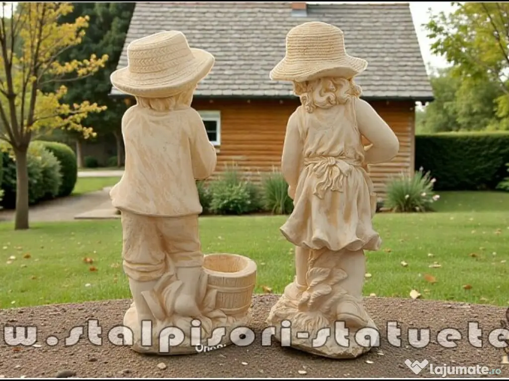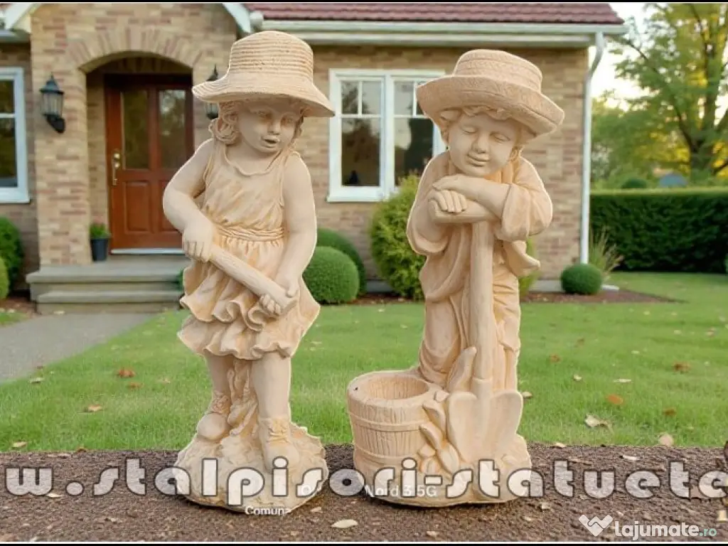 – DETALii TEHNiCE Și iNFORMATiVE PRODUS: – Preț: 1.000 lei set. (1 băiețel+1 fetiță.) Detalii Tehnice: Înălțime băiat: 67 cm. Diametru bază: 28x34 cm. Înălțime fată: 71 cm. Diametru bază: 29x25 cm. Greutate: 80 kg. (1 băiețel+1 fetiță.) Material: Beton aditivat, ciment 52,5 R, agregate concasate. Disponibilitate: din stoc și la comandă. Culori disponibile: alb marmorat, arămiu antichizat, auriu antichizat, galben antichizat, gri antichizat. Livrarea la domiciliu este gratuită oriunde în țară. Plata se face în totalitate la sediul firmei, sau în baza unei facturi proforme cu ordin de plată prin virament bancar sau prin aplicaţie de pe telefon. Nu se acceptă plata ramburs ! Contact: stâlpișori și statuete vodafone 0721 695 473