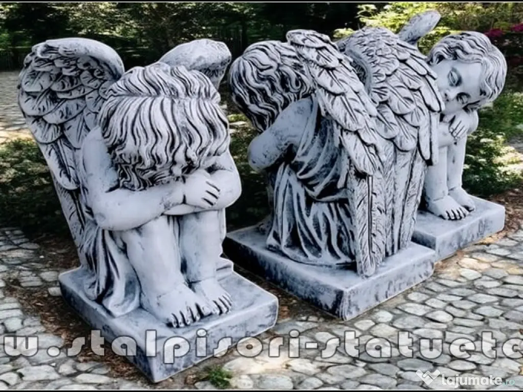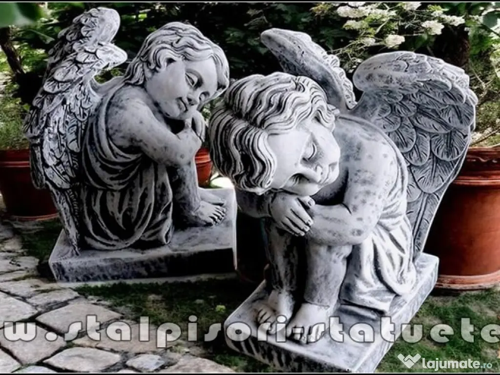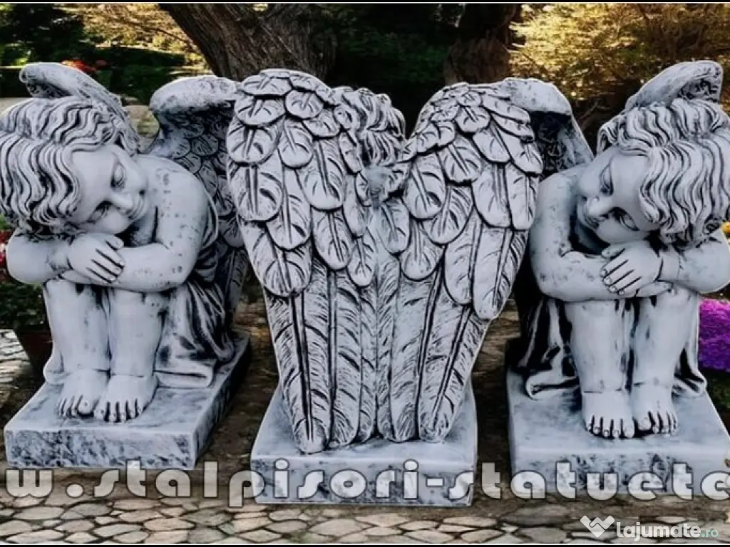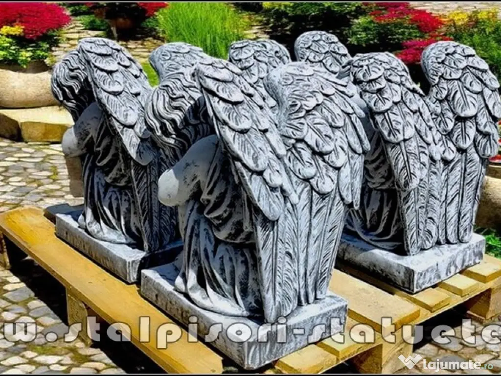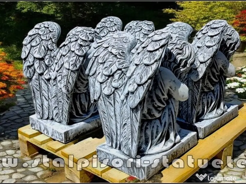LiVRARE GRATUiTĂ ORiUNDE ÎN ȚARĂ Preț: 1.700 lei (set 2 bucăţi privire stânga, dreapta.) Înălțime: 56 cm. Lățime aripi: 42 cm. Diametru bază: 42X31 cm. Greutate: 178 kg. (set 2 bucăți.) Material: Beton aditivat, ciment 52,5 R, agregate concasate.