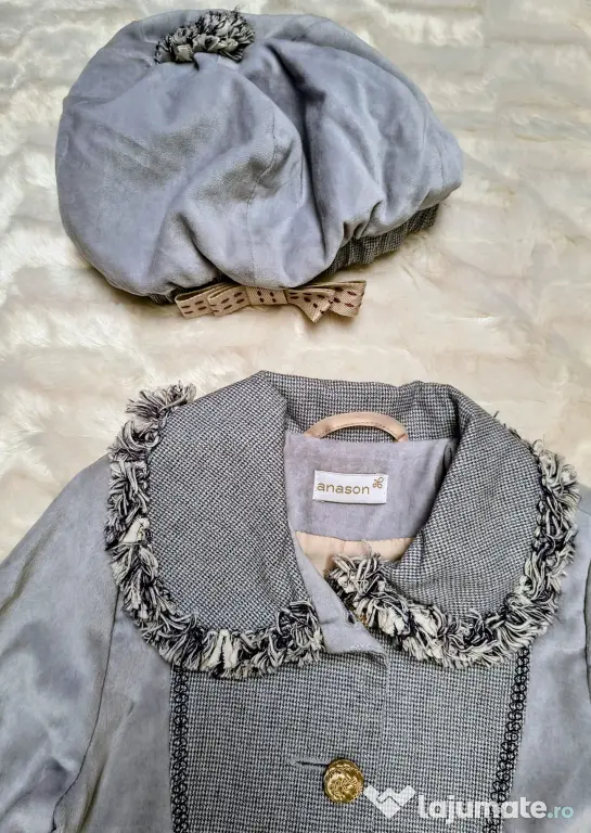 Setul este compus dintr-un palton cu croială deosebită și o beretă asortată, fiind ideal pentru ocazii speciale, sărbători sau plimbări chic în zilele răcoroase.