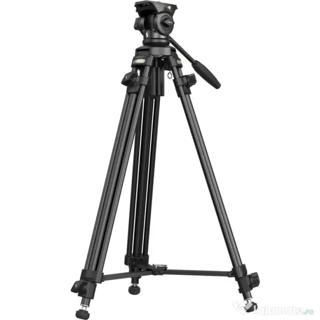 Trepiedul are trei sectiuni de picioare cu o gama de reglare a inaltimii de la 75 cm la 158 cm. Se pliaza pana la 79 cm pentru un transport simplificat in geanta de transport inclusa.