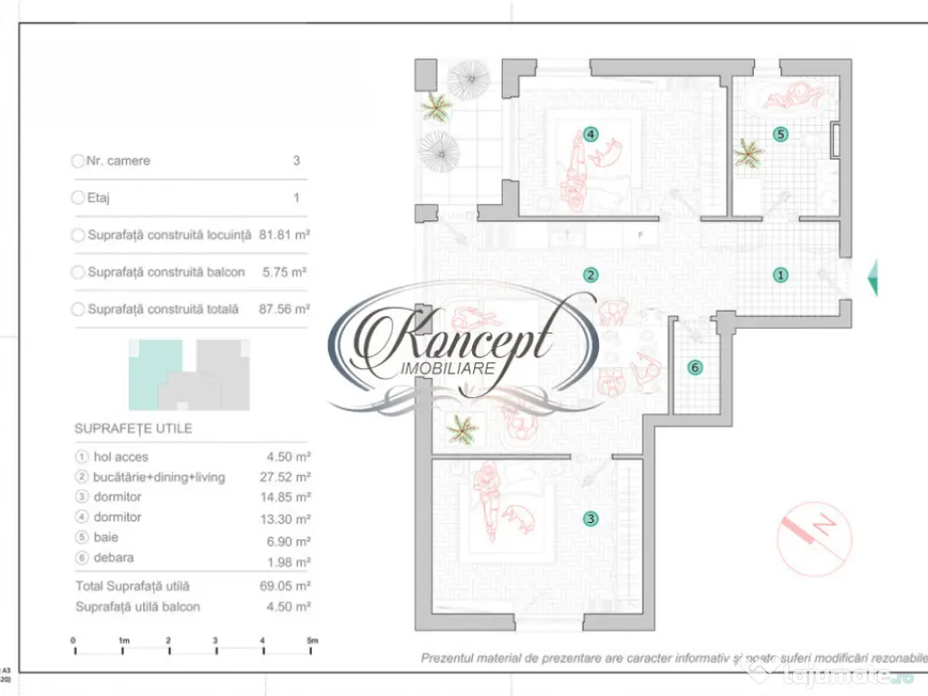 Koncept Imobiliare va ofera spre vanzare un apartament modern, intr-un complex rezidential smart house de tip boutique, intim, format din doar doua cladiri, fiecare cu cate 9 apartamente, amplasat pe Strada Oasului, in proximitate de CREIC. Apartamentul este situat la etajul 1 al imobilului (demisol destinat parcarilor, apoi P+1+etaj retras), intr-o zona accesibila, cu conexiuni rapide spre punctele importante din oras, beneficiind de orientare Sud-Vest, ideala pentru lumina naturala si confort pe tot parcursul zilei. Proprietatea are suprafata utila de 70.62 mp, la care se adauga o logie de 3.90 mp. Compartimentarea este eficienta si echilibrata: hol, living cu bucatarie open-space, 2 dormitoare, baie si un dressing dedicat, un plus important pentru organizare si spatii de depozitare in interiorul apartamentului. Se preda la stadiul de semifinisat, cu sapa, doua maini de glet si instalatiile trase pe pozitii, oferind flexibilitate pentru amenajare dupa preferintele viitorului proprietar. Apartamentul se diferentiaza prin pachetul complet de tehnologie si eficienta: incalzire in pardoseala, centrala pe bloc cu contorizare separata, panouri fotovoltaice pentru consumul comun si clasa energetica A, pentru costuri optimizate. Sistemul smart include termostat smart, interfon, control acces, usa smart la intrarea in bloc, senzori de lumina, senzor de inundatie, senzor de prezenta, usa smart la intrarea in apartament, casute postale smart, control pentru incalzire si racire, plus instalatii pregatite pentru automatizari suplimentare. Constructia este realizata din caramida, cu izolatie din polistiren grafitat, fatada cu caramida aparenta, tamplarie PVC cu geamuri termopan tripan cu protectie UV si un nivel de antifonare ridicat, completate de zone verzi amenajate in jurul imobilului. Accesibilitatea este un avantaj major pentru un apartament pe Strada Oasului: statie de autobuz la 1 minut de mers pe jos, aproximativ 2 km pana la CREIC Cluj, 2.5 km pana la Auchan Iris, 6 km pana in centrul orasului (Piata Unirii), 7 km pana la Emerson si 10 km pana la Aeroport. Parcarile subterane se pot achizitiona separat, in functie de necesitate. Aceasta proprietate se recomanda celor care isi doresc un apartament smart in zona Oasului, cu orientare buna, comunitate restransa si eficienta energetica ridicata, potrivit atat pentru locuire pe termen lung, cat si pentru investitie, avand in vedere proximitatea fata de hub-uri de business si infrastructura urbana. Termen estimat pentru finalizarea constructiei: martie 2026, iar CF-urile sunt preconizate pentru iunie 2026. Actele au fost verificate si validate de catre agentie. Pentru informatii suplimentare, programarea unei vizionari sau pentru a afla oferta noastra completa va stam la dispozitie telefonic, prin e-mail sau la sediul agentiei noastre, pe str. Aviator Badescu, nr. 19, Cluj-Napoca. Id intern: P21080 Confort: 1 Tip imobil: Bloc de apartamente Număr Băi: 1 Comision cumpărător: 0%