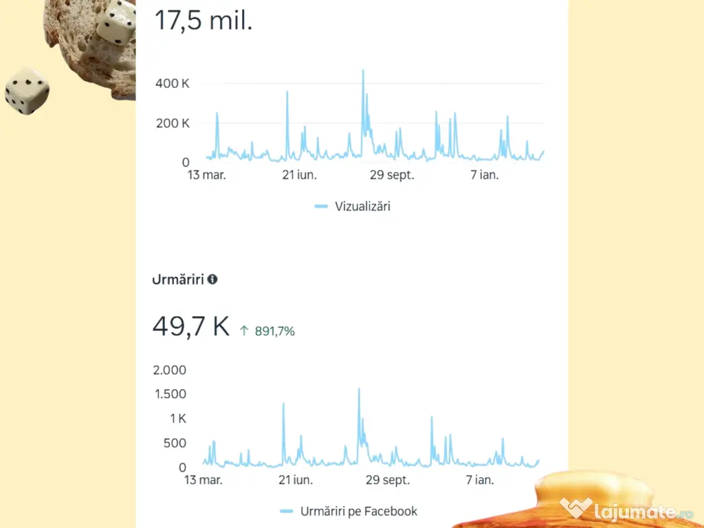 În imaginea atașată regăsiți rezultatul anual al unui client gestionat integral de echipa noastră (Instagram, Facebook, TikTok).