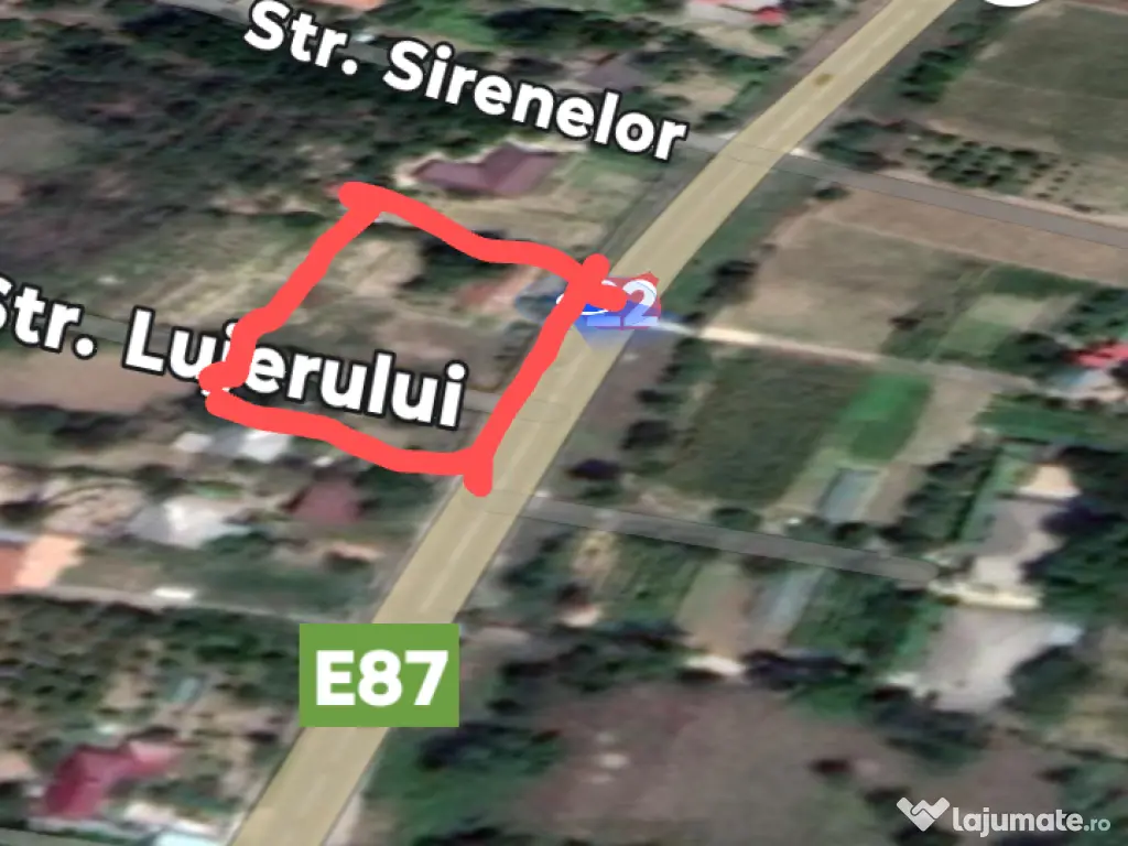 1030 mp intravilan construibil,cu 2 deschideri 41,3 la E87,apa,curent,canal 32€\mp neg.