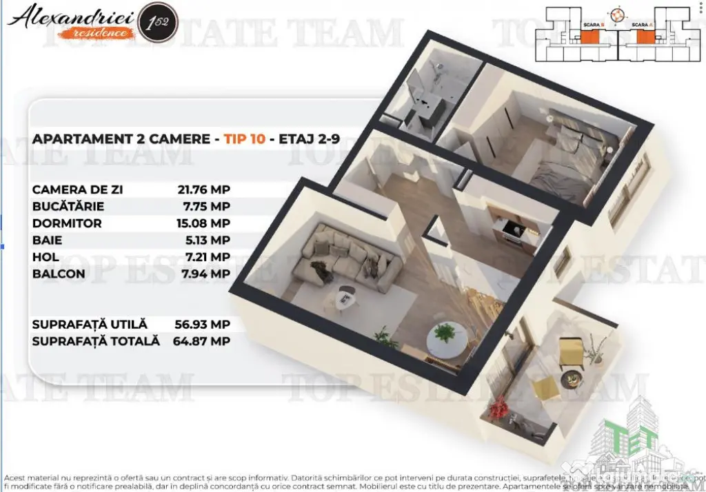Apartament cu 2 Camere la standard de confort si performanta ridicate pe Soseaua Alexandriei, Bucuresti, intr-un proiect in constructie sustinut de un dezvoltator cu peste 25 de ani de experienta si rezultate remarcabile. Fiecare locuinta din acest proiect este gandita cu grija atat pentru spatiul interior, cat si pentru mediul inconjurator, astfel incat cei care aleg achizitionarea unui apartament sa se simta cu adevarat acasa.