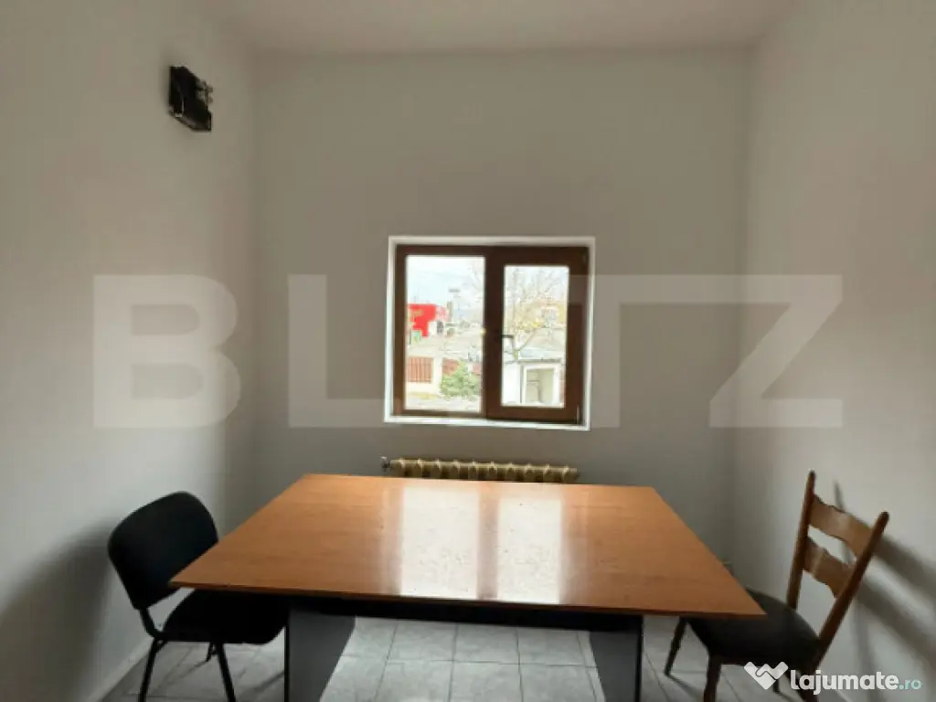 Biroul este ideal pentru activități administrative, consultanță financiara, freelanceri, mici afaceri, activitati de birou sau lucru individual. Dispune de toate utilitățile (energie electrică, încălzire), acces la grup sanitar și intrare separată, asigurând confort și independență. De asemena exista parcare disponibilă în incinta proprietății.