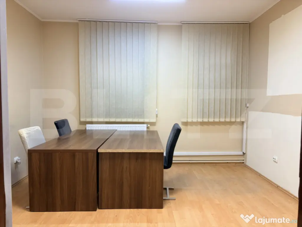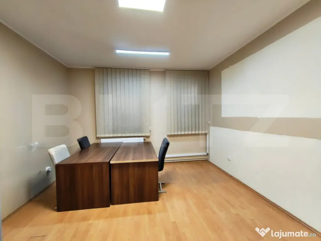 Blitz va oferă pentru închiriere spații de birouri situat central la 5 min de P.Unirii si 2 min de centru comercial Prima Shops. Camerele sunt intre 16 si 30 mp. Parcare proprie atât in fata clădirii cât si in curte, intrare separată pentru parter si separată pentru etaj, intrarea se face pe baza de cartela. Spațiile sunt încălzite de calorifere cu agent termic de la oraș dar si sistem centralizat pe gaz cu centrala separat pe fiecare etaj. camerele sunt dotate si cu aer condiționat pentru răcoarea din timpul verii. Imobilul se pretează atât pentru birouri indibiduale dar mai ales pentru clinica medicală. Va invit la vizionarea acestui imobil pentru ai descoperii potențialul! Cod ofertă / ID BLITZ: P159259 Id intern: P159259 Suprafaţă totală: 377 m² Stadiu construcţie: Finalizat Clasă birouri: B Nr. locuri parcare: 10-20 Tip imobil: Clădire de birouri