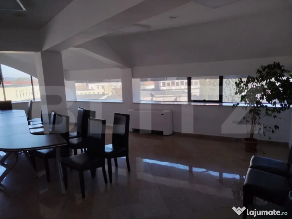 Blitz va prezinta acest spațiu comercial ultracentral din Dej, cu suprafață de 100 mp, îți oferă vizibilitate maximă și acces ușor pentru clienți. Format open space,utilizat anterior ca și sală de conferințe, cu posibilitate de compartimentare, este pregătit să fie adaptat exact nevoilor tale. Pornește-ți activitatea în inima orașului! Facilități incluse: • Internet de mare viteză – gata pentru muncă intensă • Aer condiționat – confort pe tot parcursul anului • Sistem de supraveghere video – siguranță 24/7 • Grup sanitar propriu • Spațiu separat pentru servirea mesei sau cafelei La etajul 1 vei găsi o terasă ideală pentru pauze relaxante sau socializare cu echipa. Potrivit pentru: birouri, firme de contabilitate, showroom-uri, săli de conferință sau diverse activități comerciale. Avantaje cheie: • Poziție ultracentrală, acces facil pentru clienți și parteneri • Vizibilitate excelentă pentru brandul tău • Disponibil imediat – poți începe activitatea din prima zi La prețul listat se adaugă TVA ,deductibil pe firmă. Contactează-ne astăzi pentru o vizionare și asigură-ți spațiul perfect pentru biroul sau afacerea ta înainte să fie ocupat! Cod ofertă / ID BLITZ: P150724 Id intern: P150724 Stadiu construcţie: Finalizat Clasă birouri: A Tip imobil: Clădire de birouri