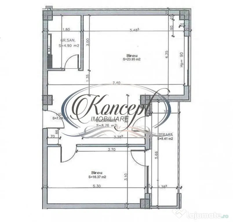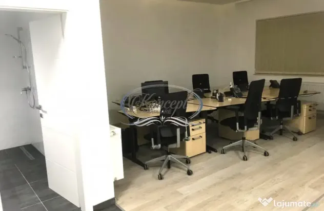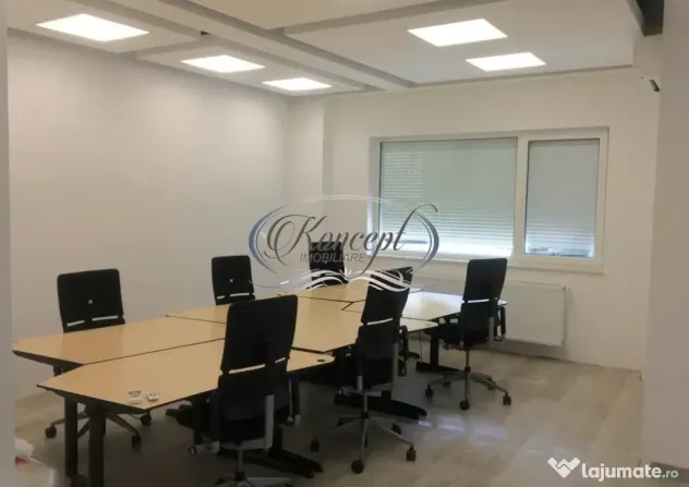 Koncept Imobiliare propune spre inchiriere un spatiu de birouri complet echipat, situat intr-o zona semicentrala, pe strada Traian, la parterul unei cladiri mixte moderne, cu 7 niveluri. Zona beneficiaza de acces facil catre centrul orasului, statii de transport public, restaurante si puncte de interes pentru mediul de afaceri, fiind o locatie excelenta pentru companii care doresc vizibilitate si eficienta logistica. Biroul dispune de 61 mp utili, compartimentati in doua incaperi luminoase si functionale, cu o terasa de 8,5 mp si doua locuri de parcare incluse. Accesul auto si pietonal este facil, iar sistemul de supraveghere video si controlul accesului asigura siguranta permanenta. Spatiul include un grup sanitar si beneficiaza de lumina naturala generoasa. Finisajele si dotarile sunt de nivel premium: sistem de iluminat LED, aer conditionat cu inverter in fiecare camera, centrala proprie, mobilier ergonomic Steelcase si retea interna CAT6. Prima incapere este configurata cu 6 statii de lucru complet echipate, iar cea de-a doua este amenajata pentru management sau sedinte, cu masa de conferinta si pat rabatabil integrat. Jaluzelele electrice, dotarile media si mobilierul fac din acest spatiu o solutie imediat functionala, fara investitii suplimentare. Pentru spatiu complet echipat chiria este 1.200 euro, la pretul afisat se poate discuta despre echipamentul ce ramane in spatiu. Recomandat pentru firme de IT, contabilitate, arhitectura sau servicii profesionale, biroul este potrivit pentru echipe de 6–8 persoane care apreciaza confortul si eficienta unui spatiu complet pregatit de lucru. Se inchiriaza mobilat, utilat si este disponibil imediat. Actele au fost verificate si validate de agentie. Pentru informatii complete, programarea unei vizionari sau pentru a afla oferta noastra completa va stam la dispozitie telefonic, prin e-mail sau la sediul agentiei noastre, pe str. Aviator Badescu, nr. 19, Cluj-Napoca.