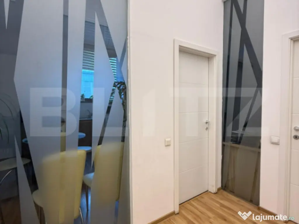 BLITZ vă oferă spre închiriere spațiu de birouri modern, cu suprafața de 150 mp, situat în zona Tudor Vladimirescu, într-o locație ușor accesibilă, cu sală de fitness în proximitate. Spațiul este complet mobilat, amenajat modern și eficient, având o capacitate de până la 20 de persoane. Compartimentarea este ideală pentru activități de birou, fiind compus din spații de birouri, sală de conferințe, chicinetă și grup sanitar. Datorită amenajării și dotărilor existente, spațiul este gata de utilizare, fără investiții suplimentare, fiind potrivit pentru firme IT, servicii, consultanță, call-center sau alte activități de birou. Avantaje: suprafață: 150 mp complet mobilat, design modern capacitate: ~20 persoane sală de conferințe dedicată chicinetă zonă accesibilă – Tudor Vladimirescu facilități în apropiere (sală fitness) Cod ofertă / ID BLITZ: P160332 Id intern: P160332 Stadiu construcţie: Finalizat Clasă birouri: B Tip imobil: Clădire de birouri