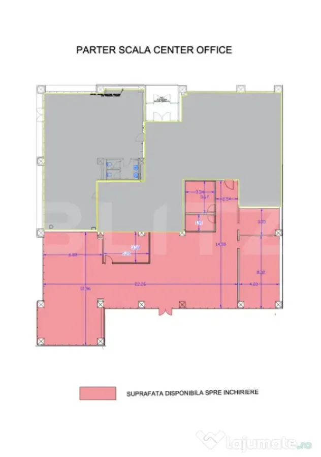 BLITZ propune spre închiriere un spațiu de 352 mp situat la parterul clădirii Scala Center, o clădire modernă de birouri de clasa A, finalizată în anul 2018 și având o suprafață totală disponibilă de peste 6.500 mp.