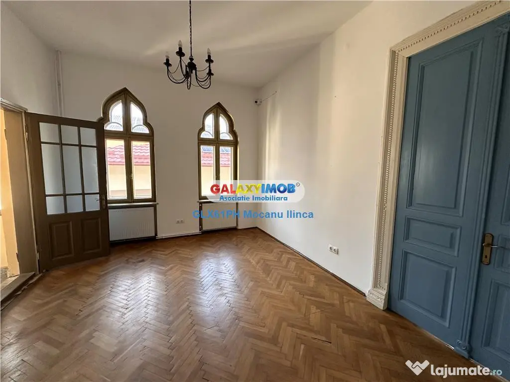 Inchiriere spatiu birouri, in Ploiesti, zona Ultracentrala, avand ca vecinatati si puncte de interes: Halele Centrale, Casa Alba, sedii firme, statii pentru mijloace de transport in comun. Spatiul este amplasat la etajul 1 al unei superbe vile interbelice, are suprafata de 90 mp si este compartimentat in 4 camere, 3 grupuri sanitare, 2 balcoane, 1 terasa inchisa, hol. Dispune de spatiu de depozitare la demisol. Designul casei va va face sa va intoarceti in timp, finisajele ( gresie, faianta, parchet, dusumea, tamplarie din lemn si termopan, usi interioare si exterioare din lemn) respectand arhitectura initala a casei. Incalzirea e realizeaza prin centrala termica de imobil, iar pentru apa calda se poate utiliza si boiler electric. Spatiului ii este alocat 1 loc de parcare in curte. Costul chiriei este de 600 euro lunar, 2 luni avans plus o luna garantie. Comisionul agentiei este de 50% din cuantumul chiriei. Informatii eficienta energetica: Clasa energetica: B Consumul de energie primara: Indicele de emisii echivalent CO2: Consum de energie din surse regenerabile: Suprafaţă totală: 120 m² An finalizare construcție: 1930 Stadiu construcţie: Finalizat Înălţime spaţiu: 3 m Număr încăperi: 4 Număr Grupuri Sanitare: 3 Posibilitate parcare: Da Nr. locuri parcare: 2 Tip imobil: Bloc de apartamente
