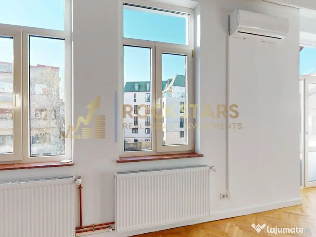 Daca ai nevoie de un spatiu mai amplu, bine organizat si intr-o zona centrala, aceasta proprietate dispusa pe doua niveluri iti ofera flexibilitatea de care ai nevoie pentru cresterea echipei sau separarea clara a activitatilor. Se inchiriaza etajul 1 si mansarda unei vile, cu o suprafata utila totala de aproximativ 200 mp. Spatiul este proaspat renovat si la prima inchiriere, cu instalatii noi, centrala termica proprie si contorizare separata. Etajul 1 este compartimentat in 5 camere, baie si bucatarie, potrivit pentru zona operationala, birouri individuale sau sali de meeting. Mansarda completeaza foarte bine spatiul, cu 3 camere, 2 bai, logie si oficiu, fiind ideala pentru birouri executive, management sau zone de lucru mai retrase. Configuratia pe doua niveluri permite o organizare eficienta a echipei si delimitarea clara intre functiuni, fiind potrivita pentru firme de consultanta, avocatura, IT, contabilitate sau alte activitati care au nevoie de spatii distincte si liniste. Un avantaj important il reprezinta cele 4 locuri de parcare exterioare, acoperite, un beneficiu rar in aceasta zona centrala, la un cost suplimentar de 70 euro lunar pentru fiecare. Locatia este foarte bine pozitionata, aproape de Piata Unirii, cu acces rapid catre principalele artere si puncte de interes precum: Colegiul National Matei Basarab, Clinica Sfanta Maria, Tribunalul Municipiului Bucuresti, RIN Central Residence, restaurante, cafenele si servicii esentiale. Este o proprietate potrivita pentru companii care cauta un spatiu reprezentativ, flexibil si bine pozitionat, intr-o zona centrala a orasului. Pentru mai multe detalii sau pentru a vedea daca acest spatiu se potriveste activitatii tale, scrie-mi sau suna pentru a programa o vizionare. Suprafaţă totală: 200 m² An finalizare construcție: 2007 Stadiu construcţie: Finalizat Număr încăperi: 8 Număr Grupuri Sanitare: 3 Posibilitate parcare: Da Nr. locuri parcare: 4 Tip imobil: Casă/Vilă