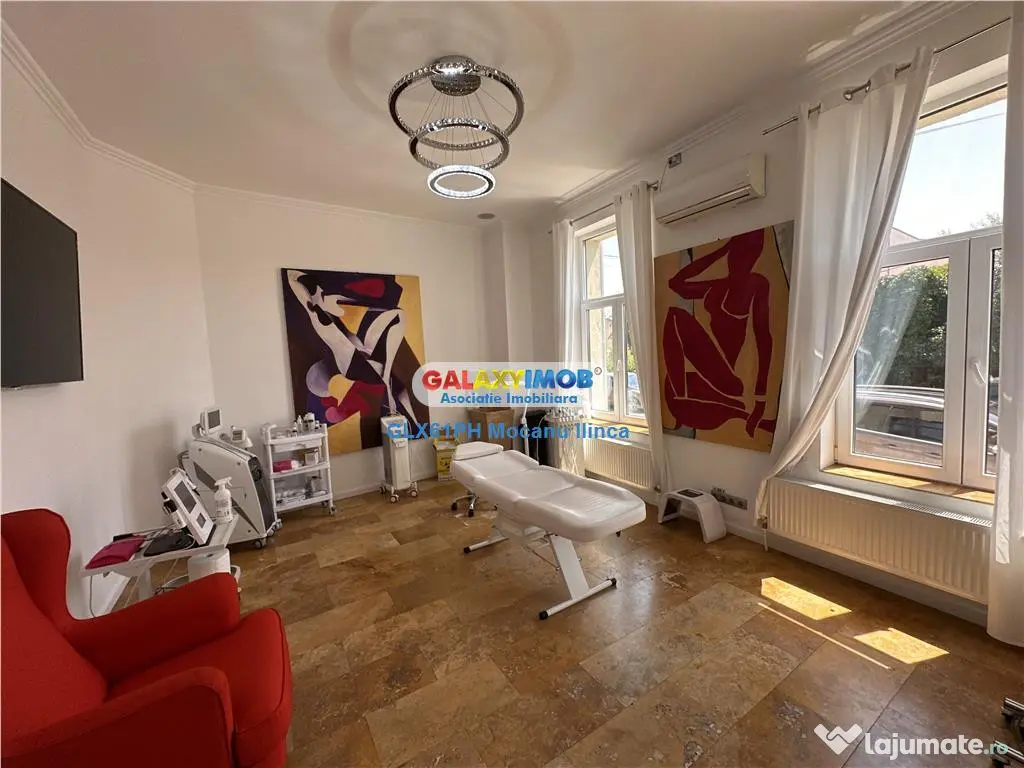 Inchiriere spatiu birouri, in Ploiesti, zona Centrala - Rudului, situat in apropiere de Penitenciar, Spitalul Schuller, ISU, Sala Sporturilor Olimpia, Liceul Economic, statii pentru mijloace de transport in comun. Se preteaza pentru sediu de firma, cabinete medicale, cabinete de avocatura, sali de cursuri. Dispune de vad comercial, zona fiind intens circulata auto. Spatiul are suprafata de 198 mp si urmatoarea compartimentare: Subsol: crama - 47 mp; Demisol: 2 camere, grup sanitar, hol - 43 mp; Parter: 2 camere, hol, spatiu de depozitare - 55 mp; Mansarda: open space, grup sanitar- 53 mp; Cladirea a fost renovata recent si este modern finisata cu gresie, faianta, parchet, tamplarie PVC cu geam termopan. Incalzirea se realizeaza prin centrala termica proprie, iar climatizarea prin 3 aparate de aer conditionat. Costul chiriei este de 1480 euro lunar, o luna avans plus o luna garantie. Comision: 50% Informatii eficienta energetica: Clasa energetica: B Consumul de energie primara: Indicele de emisii echivalent CO2: Consum de energie din surse regenerabile: Suprafaţă totală: 74 m² An finalizare construcție: 2018 Stadiu construcţie: Finalizat Înălţime spaţiu: 3 m Număr încăperi: 5 Număr Grupuri Sanitare: 2 Tip imobil: Bloc de apartamente