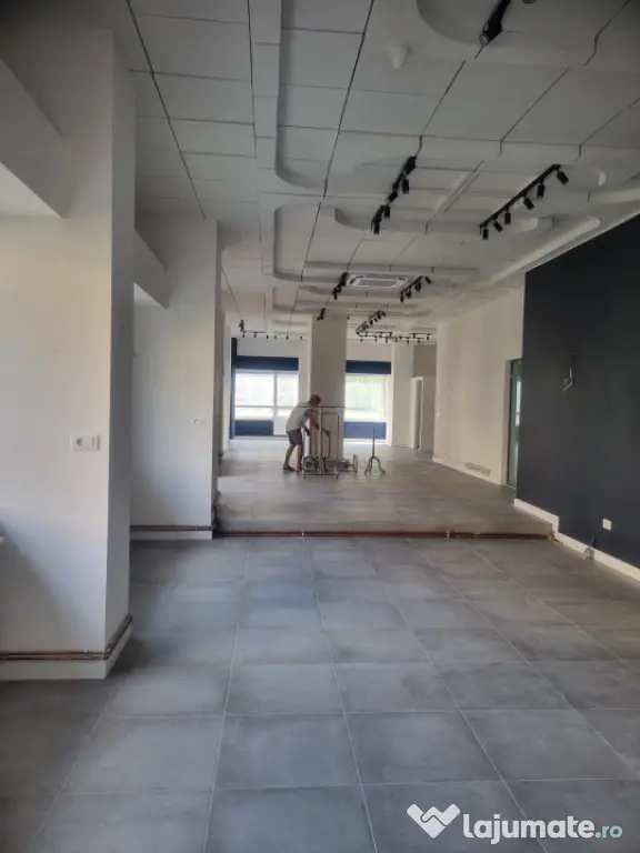 Blitz va ofera spre inchiriere acest spațiu comercial generos de 200 m², situat in inima orasului, poziționat la etajul 1, oferă oportunități excelente pentru diverse activități economice. Recent renovat, spațiul impresionează printr-un design modern și luminos, fiind pregătit pentru utilizare imediată. Dispune de două intrări, facilitând accesul și flexibilitatea în organizarea fluxului de clienți.
