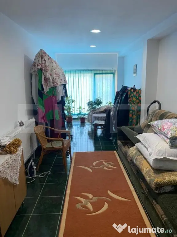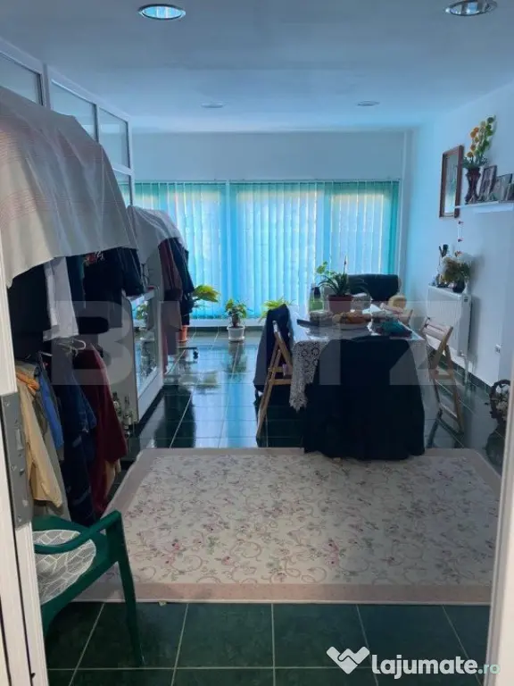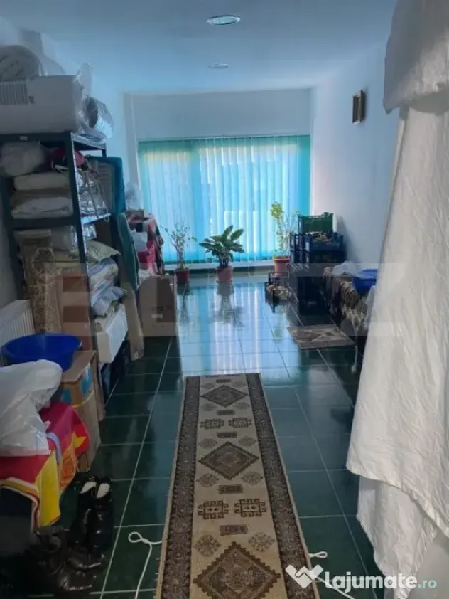 - parter camera open space cu vitrina stradala, hol, casa scarii, birou, debara, balcon inchis ce poate fi folosit ca si birou