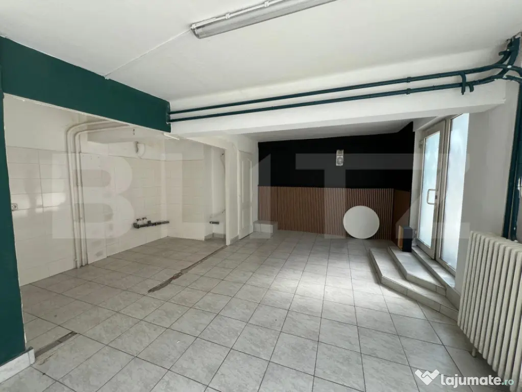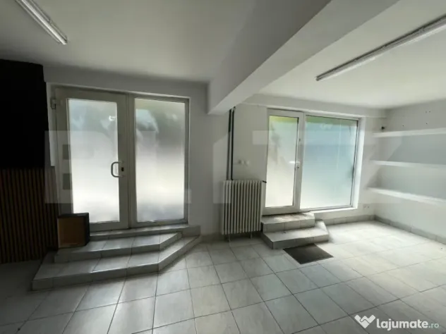 Spațiul are o suprafață utilă de 35 mp și este amplasat la parterul unui imobil, beneficiind de vitrine generoase la stradă, ideale pentru expunere și promovare.