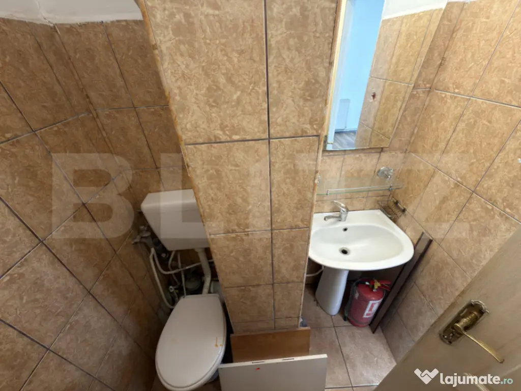 Blitz vă oferă spre închiriere spațiu comercial modern, situat în zona Cetate, cu o suprafață utilă de 40 mp. Spațiul beneficiază de vizibilitate excelentă datorită vitrinei stradale ample și ușii de acces din sticlă. Caracteristici și dotări: • Compartimentare: Open space generos, ușor de configurat. • Dotări: Centrală termică proprie, calorifere, aer condiționat instalat. • Finisaje: Pardoseală tip parchet, pereți lavabili albi, iluminat LED/spoturi. • Utilități: Grup sanitar propriu (finisat cu gresie și faianță), apă, curent, gaz. • Destinație: Ideal pentru magazin, showroom, salon de înfrumusețare, agenție sau birouri. Spațiul este curat, luminos și disponibil imediat. Zonă circulată, cu acces facil. Cod ofertă / ID BLITZ: P161943 Id intern: P161943 Stadiu construcţie: Finalizat Tip imobil: Bloc de apartamente