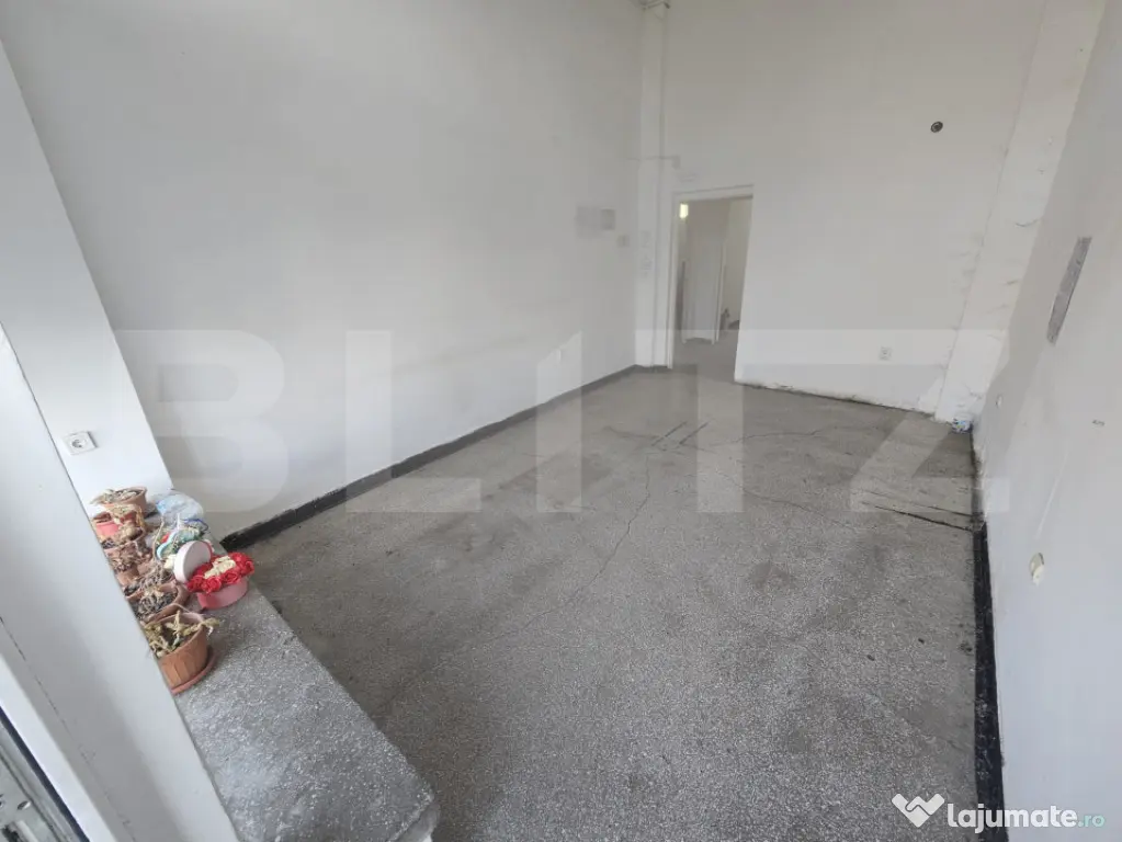 Imobilul este compartimentat și dispune de vitrină stradală, oferind vizibilitate bună și acces facil pentru clienți. Un avantaj important îl reprezintă faptul că spațiul beneficiază de două intrări: una principală în față și una secundară în spate, foarte utilă pentru aprovizionare sau acces separat.
