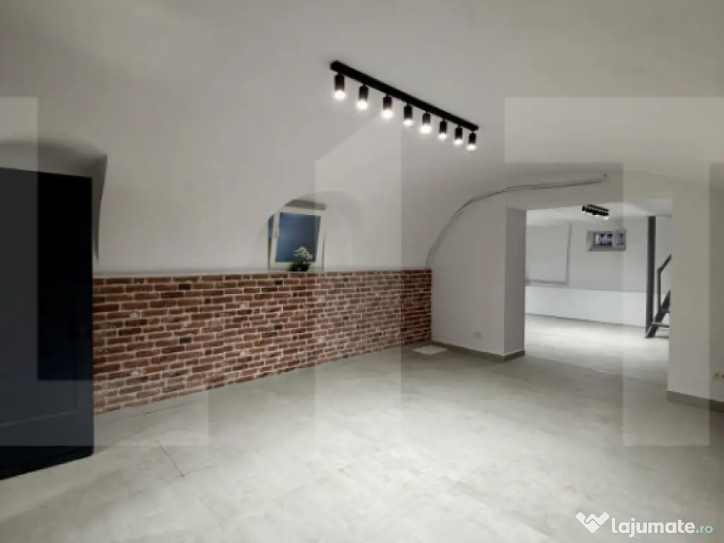 Blitz vă oferă oportunitatea de a închiria un spațiu comercial de 75 mp, situat într-o locație de invidiat: zona ultracentrală, la doar câțiva pași de principalele puncte de interes ale orașului, instituții, bănci și zone pietonale cu trafic intens. De ce să alegi acest spațiu? Locație Strategică: Fiind ultracentral, afacerea dumneavoastră va beneficia de vizibilitate și acces facil pentru clienți și parteneri. Design Modern & Recent Renovat: Spațiul a fost renovat integral cu finisaje de înaltă calitate. Designul industrial-elegant (cărămidă aparentă, iluminat tip track-light, pardoseală modernă) creează o atmosferă profesională și primitoare. Costuri de Mentenanță Minime: * COSTURI ZERO PENTRU INCLAZIRE: Un avantaj major care elimină costurile ridicate de întreținere în perioada iernii. Climatizare inclusă: În perioada imediat următoare se va monta sistemul de aer condiționat (clima) pentru un confort termic perfect vara. Compartimentare Funcțională: Sală principală spațioasă și luminoasă. Zonă de chicinetă modernă, mobilată și utilată. Grup sanitar nou, dotat cu cabină de duș și boiler electric. Impecabil: Spațiul este extrem de curat, gata să-și primească primii chiriași după renovare. Ideal pentru: Datorită suprafeței de 75mp și a poziționării ultracentrale, spațiul se pretează excelent pentru: Birouri de consultanță, IT sau avocatură. Studio creativ (foto, design, arhitectură). Centru de înfrumusețare / estetică premium. Showroom / Magazin specializat. Activități educaționale sau cursuri private. Si multe alte activitati. Cod ofertă / ID BLITZ: P169993 Id intern: P169993 Stadiu construcţie: Finalizat Tip imobil: Casă/Vilă