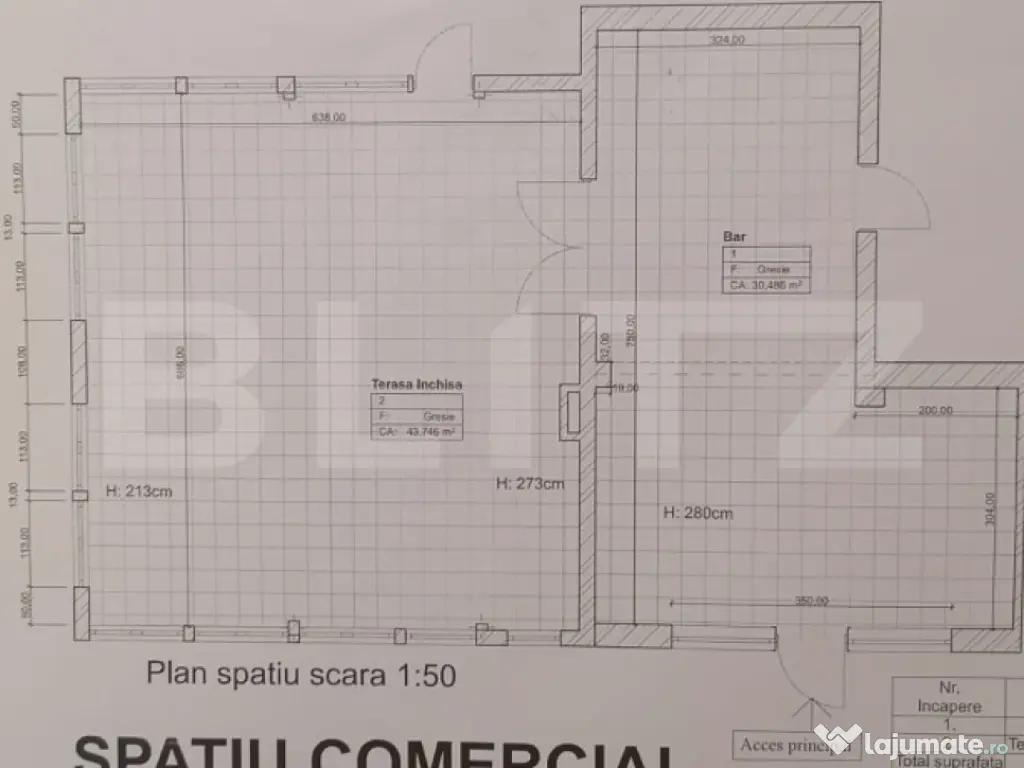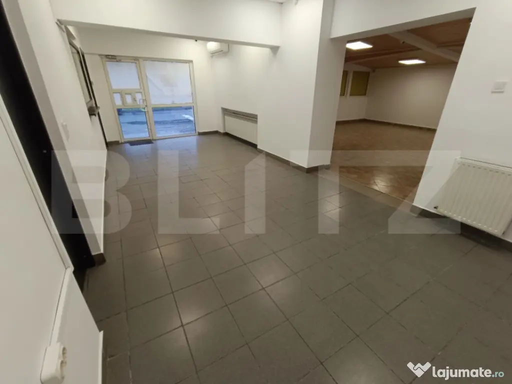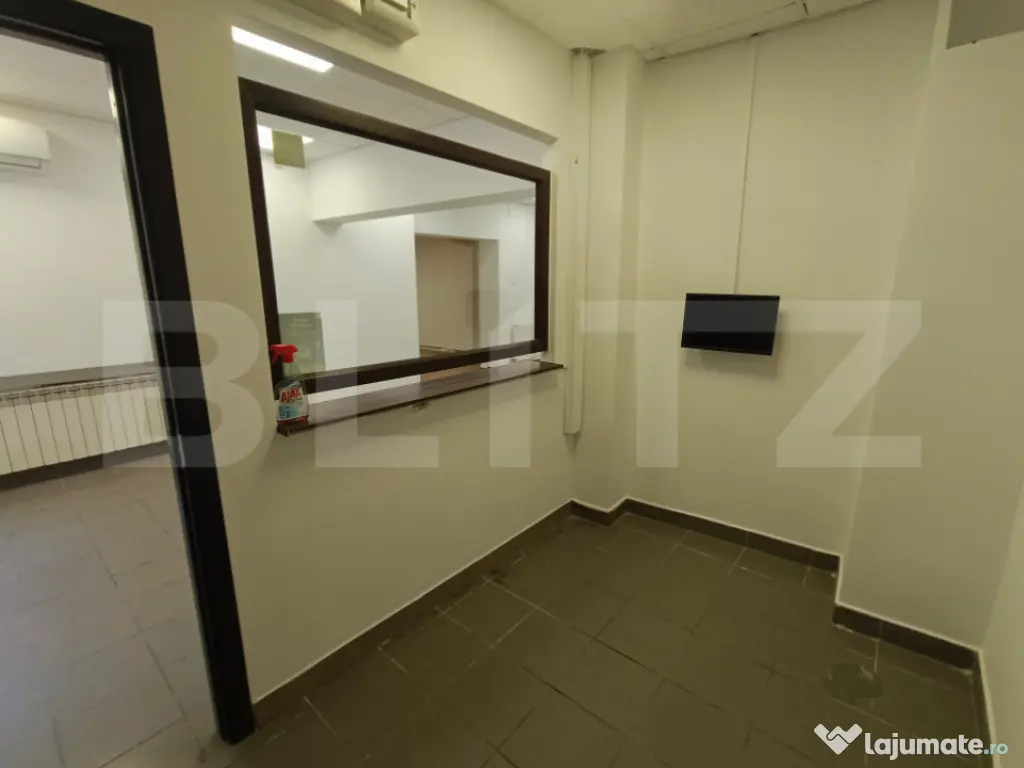 Blitz vă oferă spre închiriere un spațiu comercial de 80 mp, situat la parter cu acces direct din stradă, într-o zonă cu trafic intens din Nicolina 2. Spațiul este ideal pentru activități comerciale, birouri, showroom, salon, cabinet etc. -Centrală termică proprie -Curent trifazic (380V) -Aparat de aer condiționat -Sistem de securitate complet: camere video, senzori, alarmă -Grup sanitar propriu -Spațiu renovat, gata de utilizare Zona Nicolina – vizibilitate bună, zonă circulată. Disponibil imediat! Cod ofertă / ID BLITZ: P154556 Id intern: P154556 Număr Băi: 1 Curent Apă Canalizare Climă