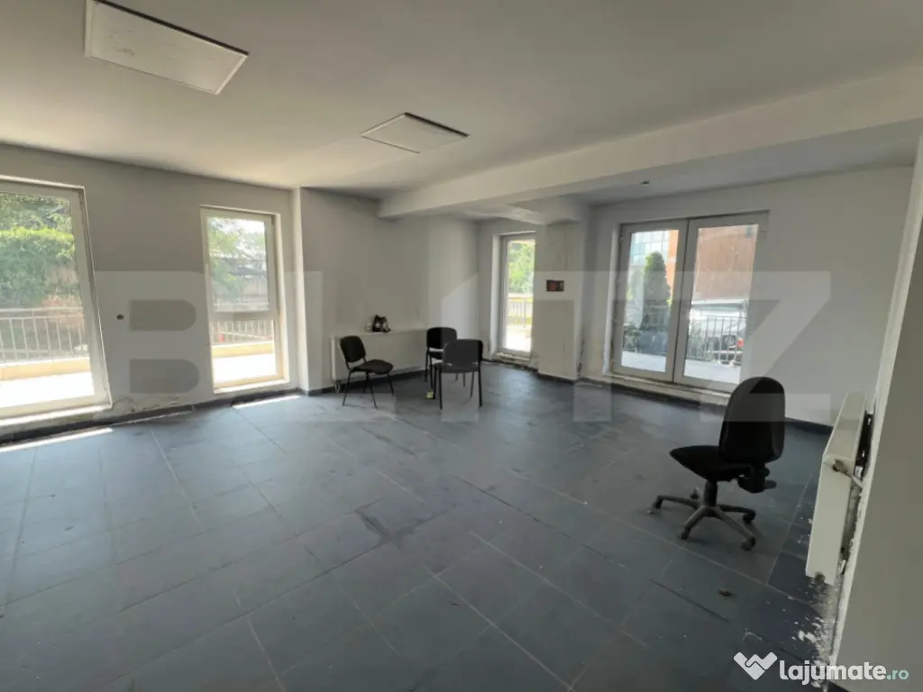 Spațiul se predă finisat, gata pentru amenajarea și personalizarea specifică activității dorite