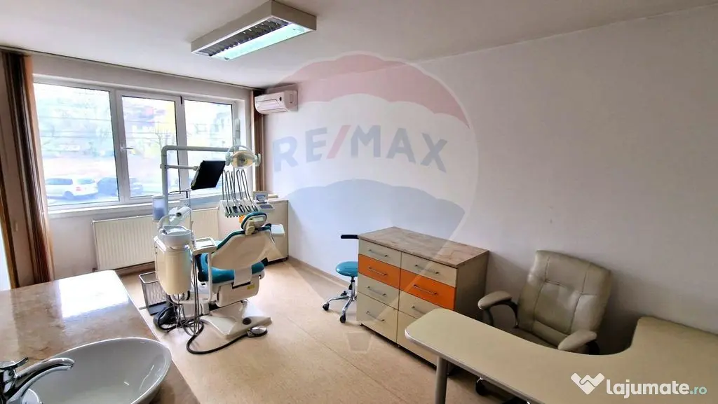 Imobilul dispune de toate utilitățile necesare desfășurării activității în condiții optime. Spațiul poate fi utilizat în forma actuală, fiind amenajat ca și cabinet stomatologic, sau poate fi predat liber, oferind flexibilitate pentru adaptarea în funcție de cerințele și viziunea viitorului chiriaș.
