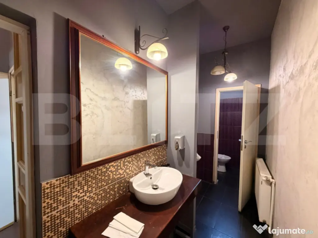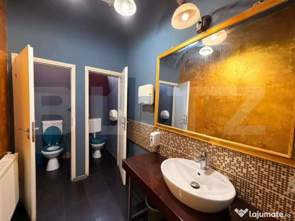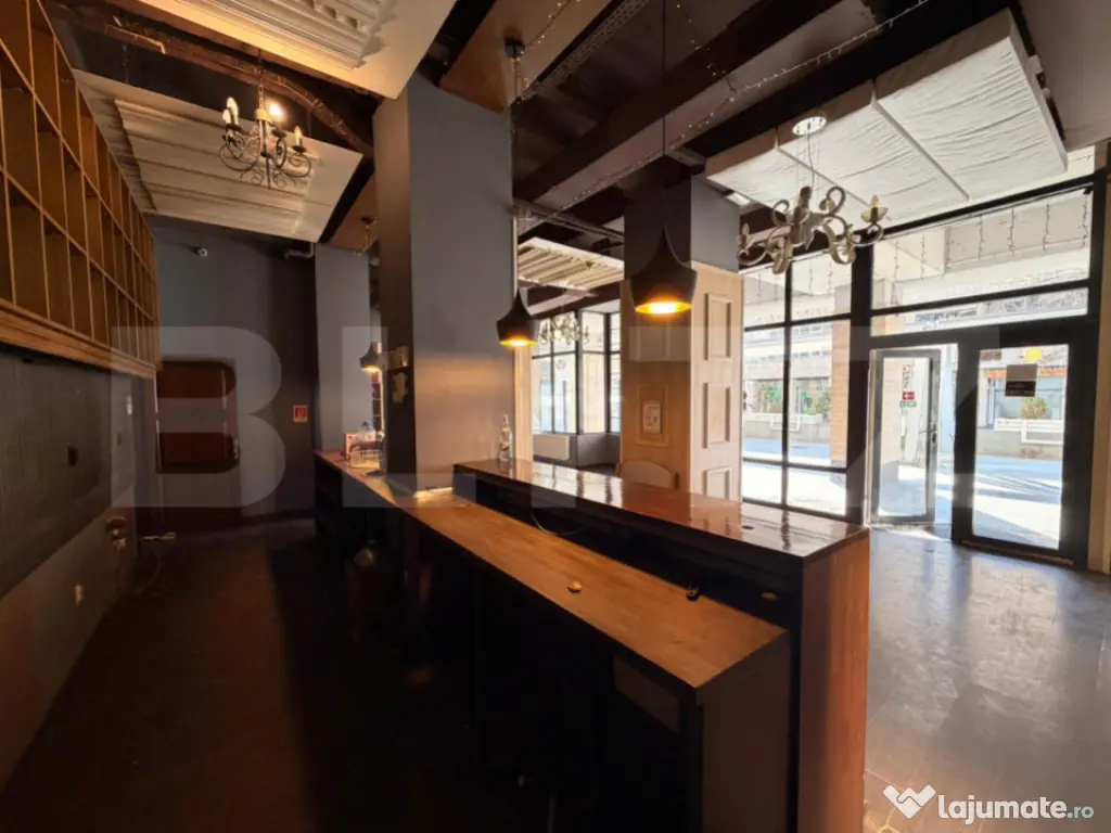 Se oferă spre închiriere un spațiu comercial cu personalitate, situat într-una dintre cele mai căutate zone din centrul istoric al Craiovei, chiar lângă celebrul complex Hotelul Minerva – un reper arhitectural al orașului construit la începutul secolului XX.  Zona beneficiază de trafic pietonal intens, vizibilitate excelentă și acces direct din zona pietonală a centrului vechi, fiind ideală pentru activități HoReCa, cafenea premium, wine bar, lounge, showroom sau concept store. Spațiul a fost recent restaurat și amenajat, păstrând o atmosferă elegantă și elemente arhitecturale cu personalitate. Detalii tehnice (conform schiței cadastrale) sală principală de servire, desfășurată pe toată lungimea spațiului zonă de bar central mai multe zone de seating / compartimentări pentru mese hol de acces și circulație interioară grupuri sanitare separate pentru clienți și personal spații tehnice și depozitare zonă posibilă pentru preparare / back office vitrină generoasă către stradă, cu lumină naturală compartimentare eficientă, care permite organizarea facilă a fluxului pentru activități HoReCa Designul interior este completat de: • bar central din lemn masiv • iluminat ambiental cald și corpuri decorative • rafturi și spații de depozitare integrate • tavane înalte, specifice clădirilor istorice • arhitectură cu arcade și elemente decorative ce oferă personalitate spațiului. Localizare ???? Centrul Vechi Craiova – zona Minerva ???? În imediata apropiere a restaurantelor, cafenelelor și a principalelor puncte de interes din oraș ???? Zonă cu flux constant de turiști și localnici Potrivit pentru wine bar / cocktail bar cafenea premium lounge sau bistro concept store galerie sau spațiu pentru evenimente Acest spațiu oferă o oportunitate rară de a dezvolta un business într-o zonă emblematică a Craiovei, unde istoria, eleganța și vizibilitatea se întâlnesc. ???? Pentru mai multe detalii și programarea unei vizionări, vă stau cu drag la dispoziție. Cod ofertă / ID BLITZ: P166757 Id intern: P166757 Stadiu construcţie: Finalizat Tip imobil: Bloc de apartamente
